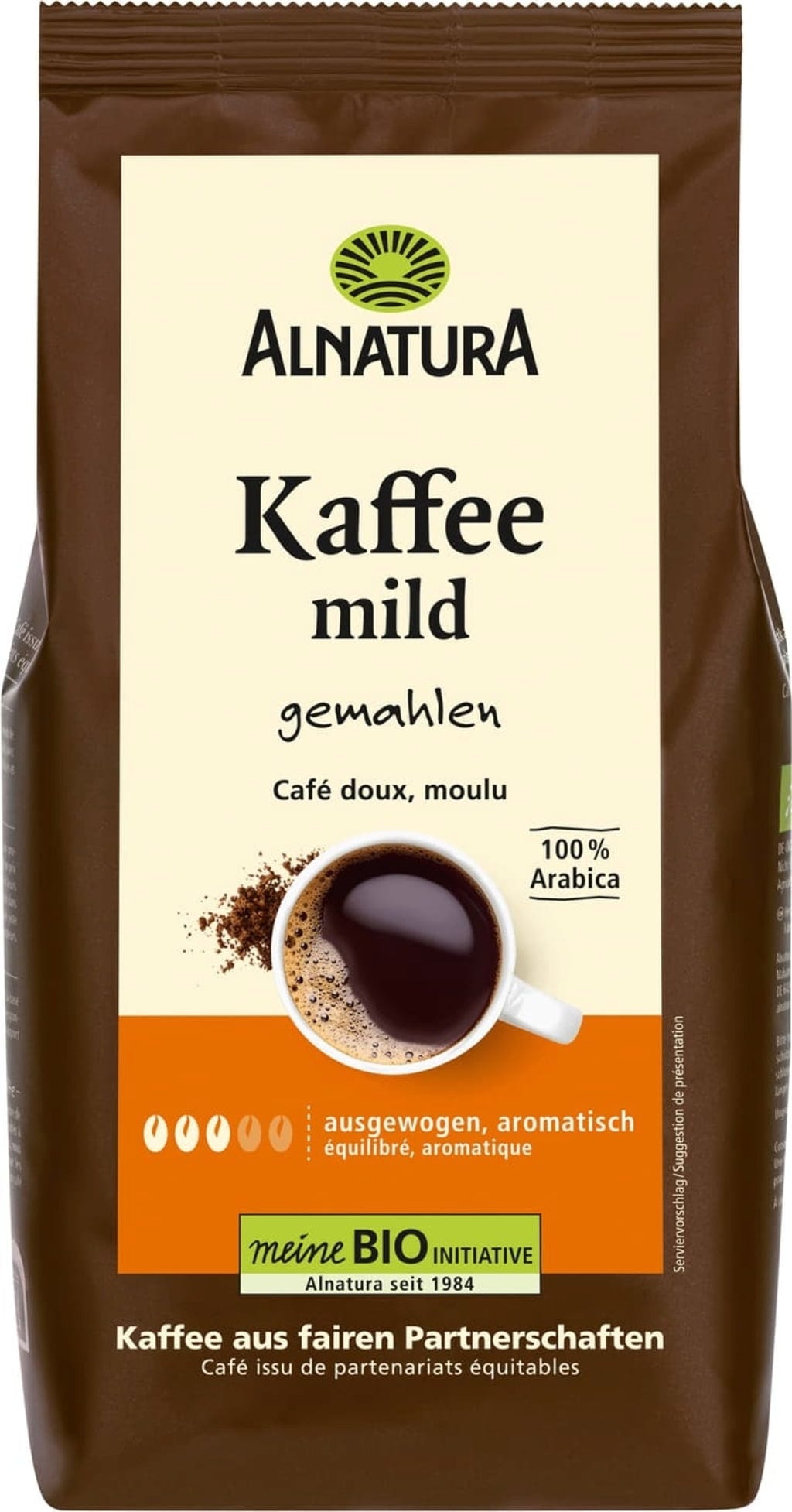 Vyvážený a aromatický: pro Alnatura kávu jsou bio zrna Arabica zušlechtěna tradičním dlouhým pražením a poté namleta. Zaujme svou vyváženou, aromatickou chutí.