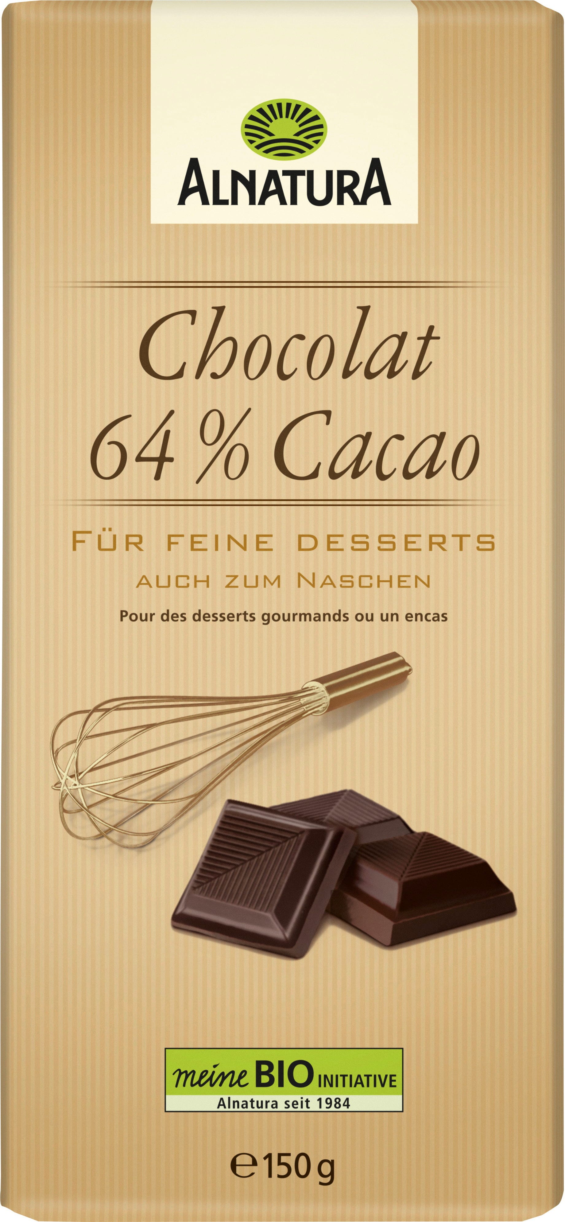 Alnatura Bio Chocolat 64 %, hořká čokoláda na dezerty, 150 g