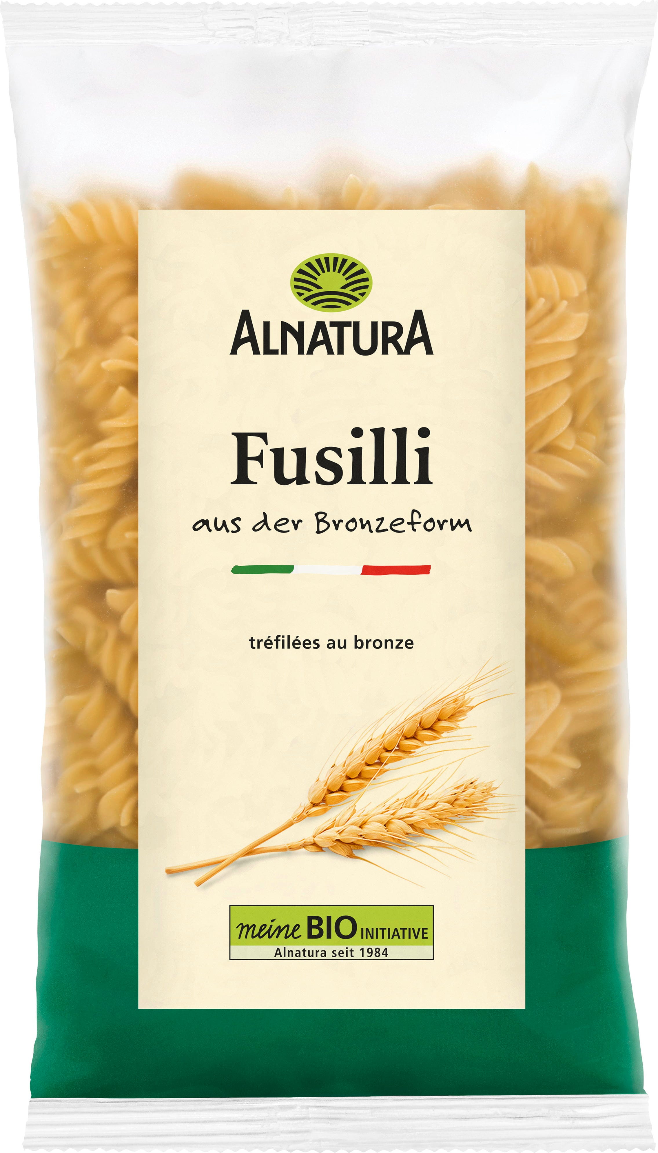 Bio Fusilli od Alnatura jsou vyrobené ze semoliny z tvrdé pšenice. Tyto spirálové těstoviny mají všestranné využití. Skvěle chutnají s různými pesty stejně jako s rajčatovými, masovými nebo sýrovými omáčkami.