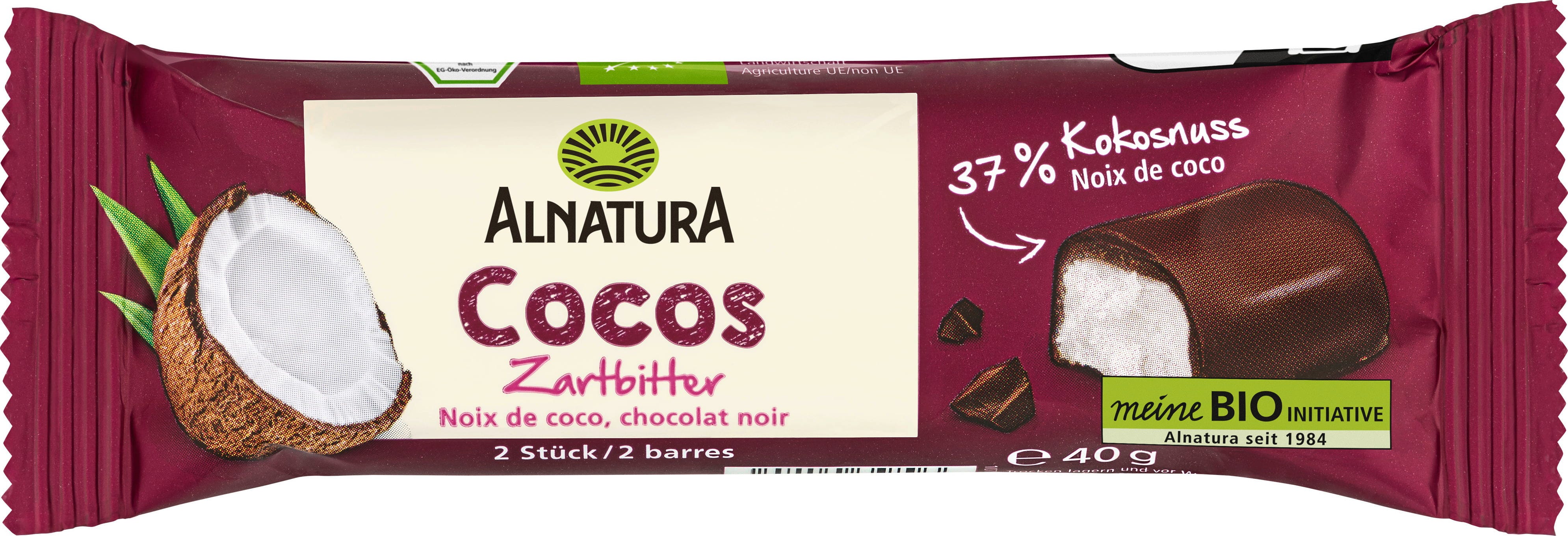 Alnatura Bio kokosová tyčinka, hořká čokoláda, 40 g