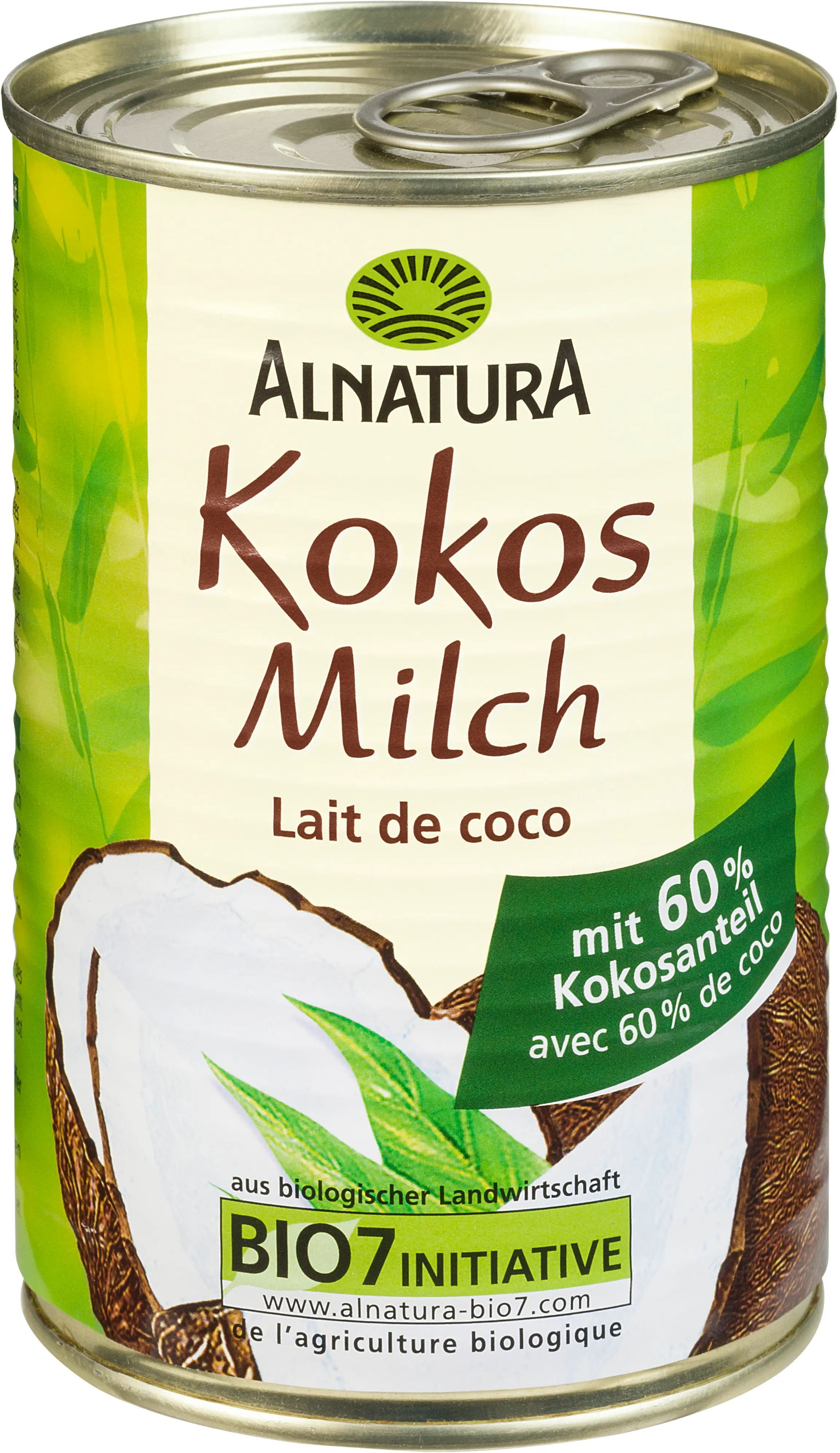 Kokosové mléko od Alnatura dodává exotickým a asijským pokrmům lehce tropický nádech. Vysoký obsah kokosu (60 %) zajišťuje obzvláště intenzivní kokosovou chuť. Pokud chcete, můžete kokosovým mlékem vylepšit i koktejly, polévky nebo pečivo.