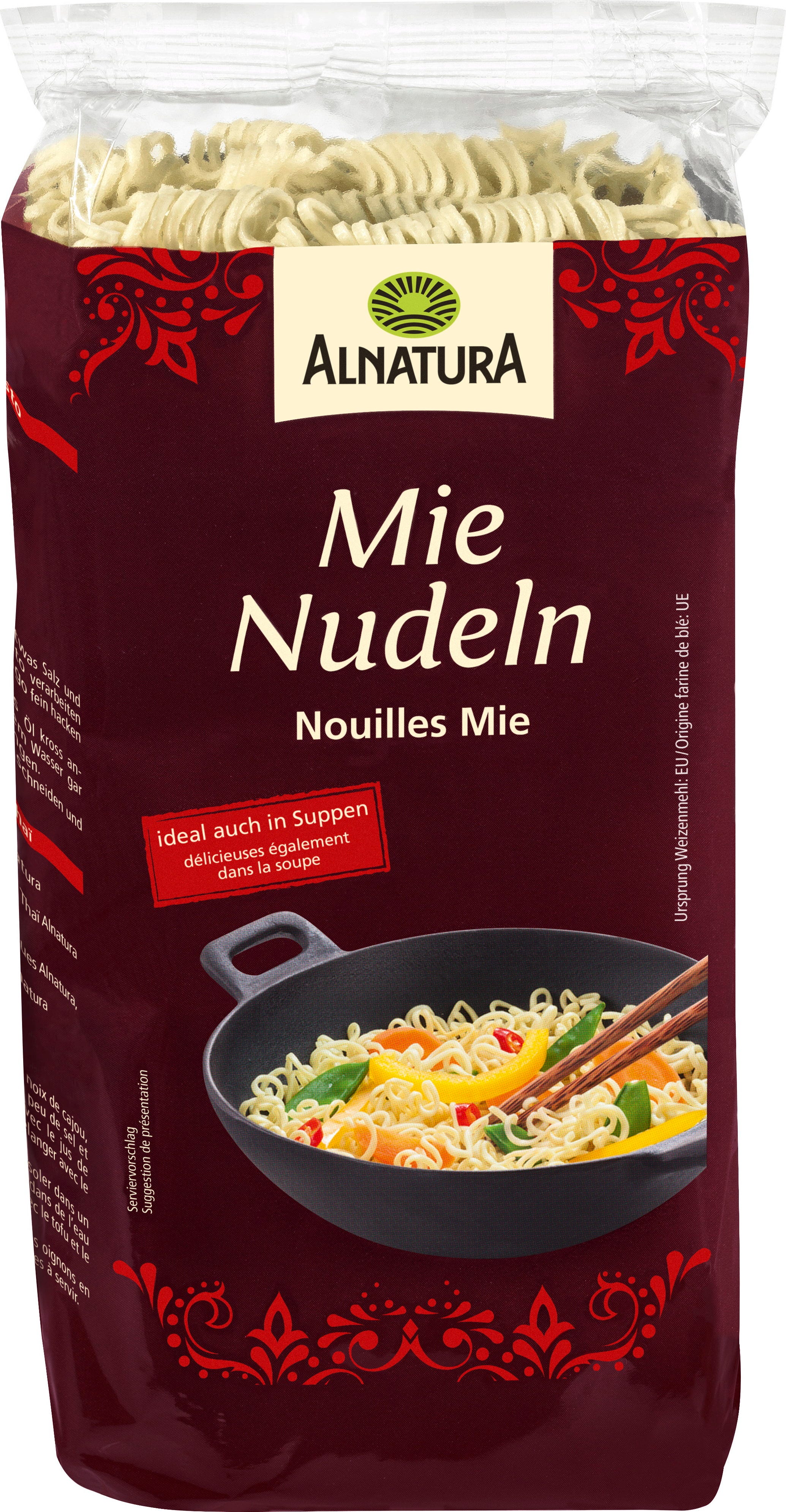 Alnatura Bio Mie nudle se ideálně hodí do asijské kuchyně. Snadno se porcují a jsou hotové už za 4-6 minut. Perfektní do polévek a k wok zelenině. Ingredience pocházejí z bio zemědělství.