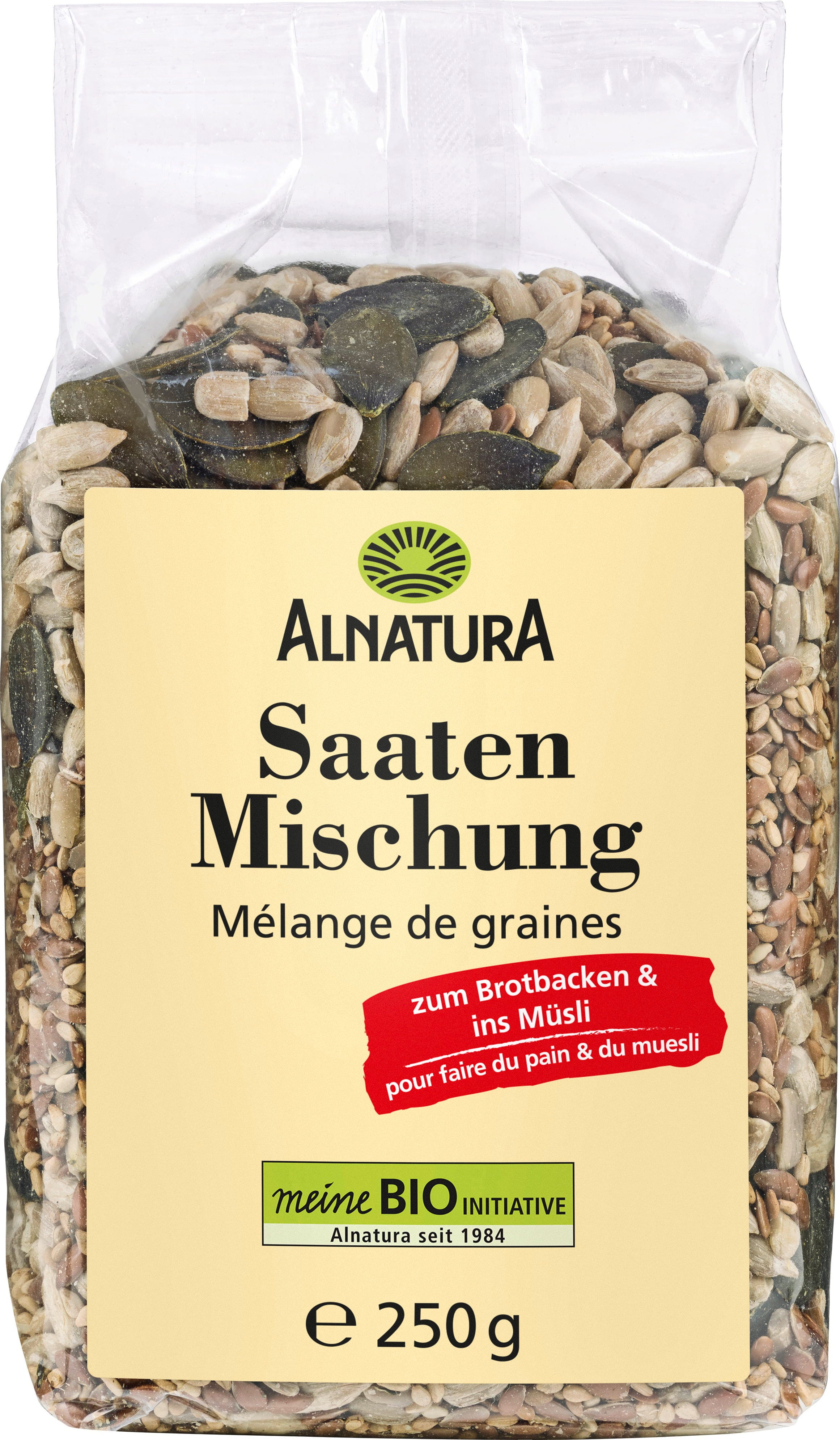 Alnatura Bio směs semínek se skládá ze slunečnicových a dýňových semínek, sezamu a lněného semínka. Ať už jako ingredience do chleba a pečiva, jako Topping na zapékané pokrmy a müsli nebo k doladění salátu oříškovou notou: tato směs z bio zemědělství má všestranné využití.