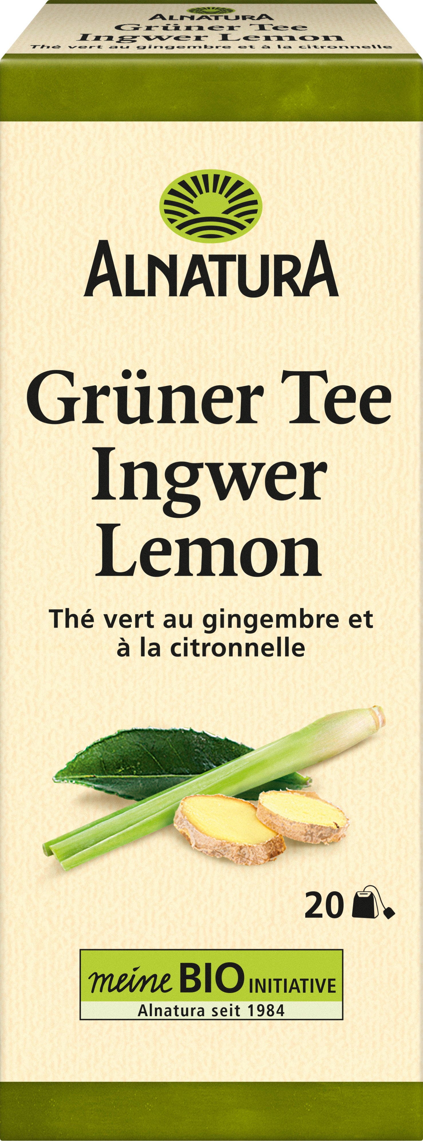 Alnatura Bio zelený čaj zázvor-citron, 20 čajových sáčků (30 g)