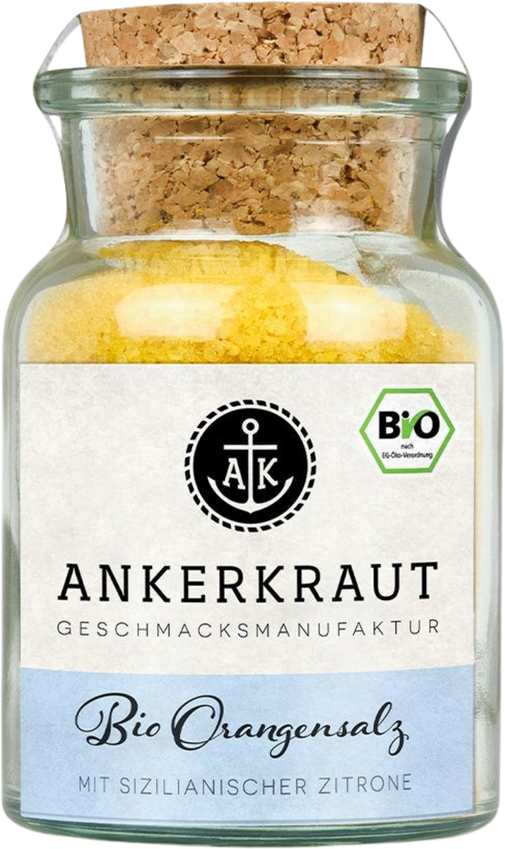 Jednoduchá, ale rafinovaná! Bio pomerančová sůl značky Ankerkraut je skvělou směsí mořské soli, pomeranče, trochy papriky a kurkumy. Marinádám na kuře nebo grilování dodá slaně ovocný nádech, dresinkům nebo dipům poskytuje "kulaté aroma" a boduje také mnohovrstevnatou chutí. Neobsahuje cibuli, česnek, přidaný cukr, umělé zvýrazňovače chuti ani přídatné látky. Skvělá i do ovocných salátů!