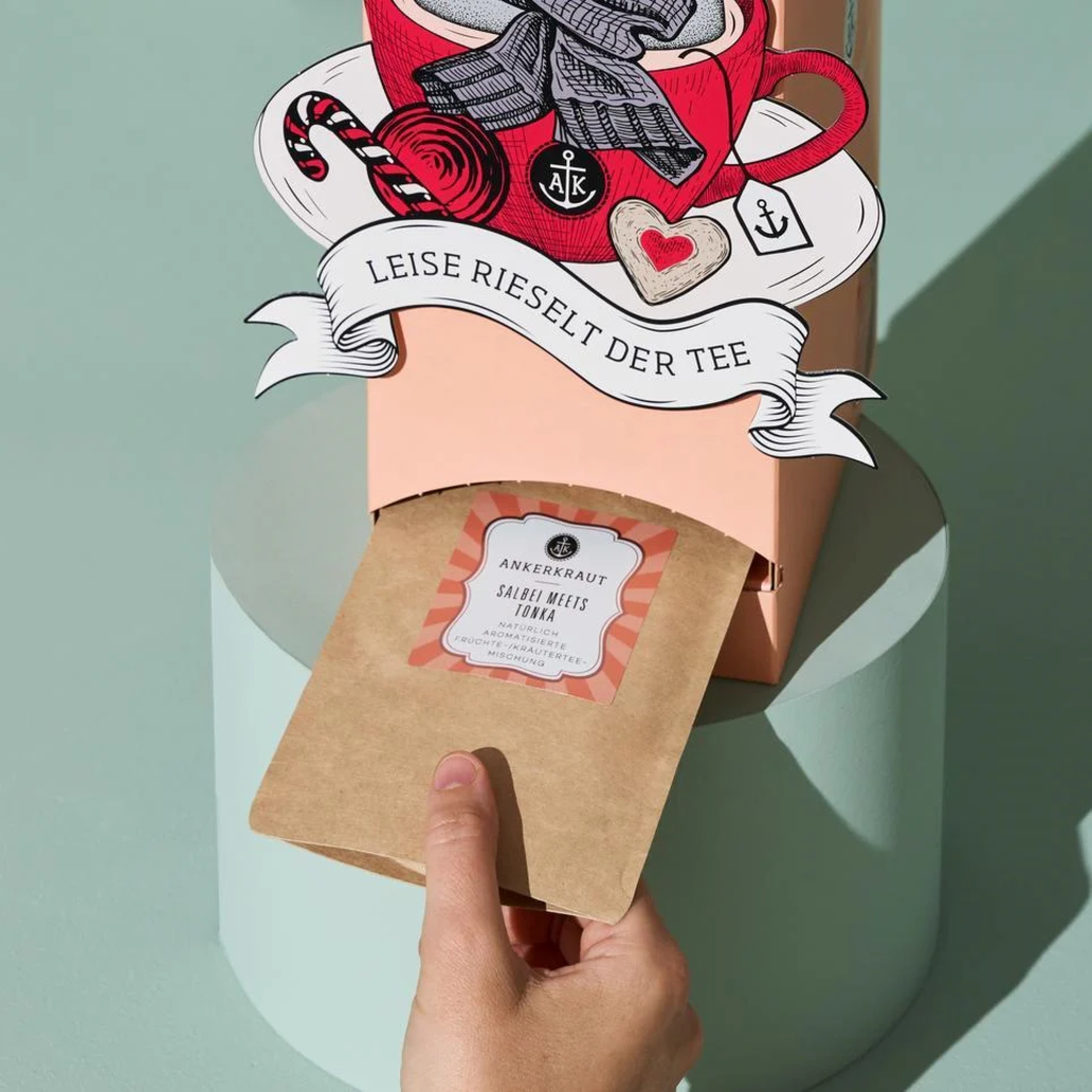 Pro všechny, kteří si rádi zpříjemňují adventní čas kvalitními a rozmanitými čaji, je tento čajový adventní kalendář od Ankerkraut tou pravou volbou. Najdete v něm 24 pečlivě vybraných čajových sáčků – samozřejmě zcela bez přidaných zvýrazňovačů chuti.