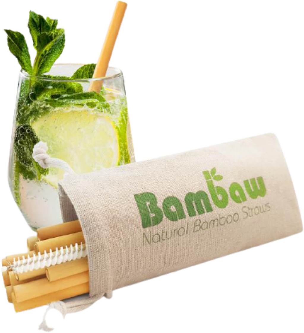 Bambaw Bambusová brčka na pití s bavlněným transportním pytlíkem, 12 × 14 cm a 22 cm (12 ks)