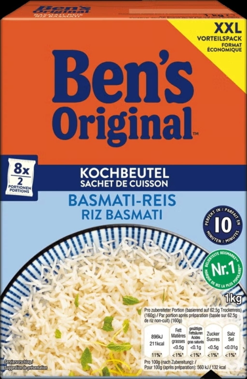 S BEN'S ORIGINAL™ Basmati v sáčku na vaření se Vám vždy podaří dokonale sypká a voňavá rýže – snadno a bez rizika připálení. Tato extra dlouhá štíhlá rýže basmati pochází z podhůří Himálaje a je ceněná pro svou jemnou vůni a nadýchanou konzistenci. Skvělá jako příloha nebo základ pro kari, bowls a další jídla.