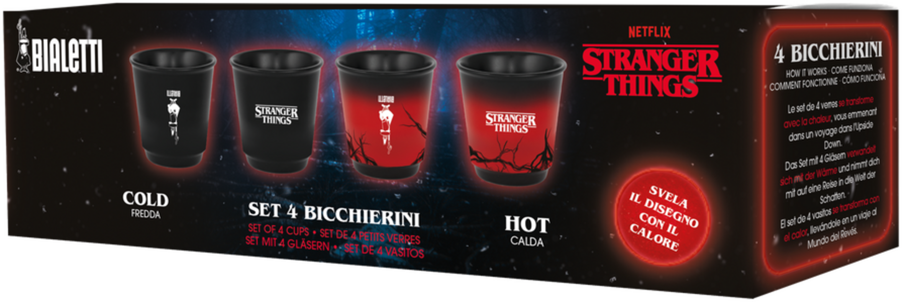 S kolekcí „Stranger Things“ se příprava i vychutnávání kávy stává jedinečným zážitkem. Kromě fantastických motivů všechny kousky nadchnou teplotně citlivými efekty – při naplnění horkým nápojem mění design nebo ve tmě září červeně. Skutečné must-have pro všechny fanoušky kultovního seriálu „Stranger Things“ – a samozřejmě i jako skvělý dárek.