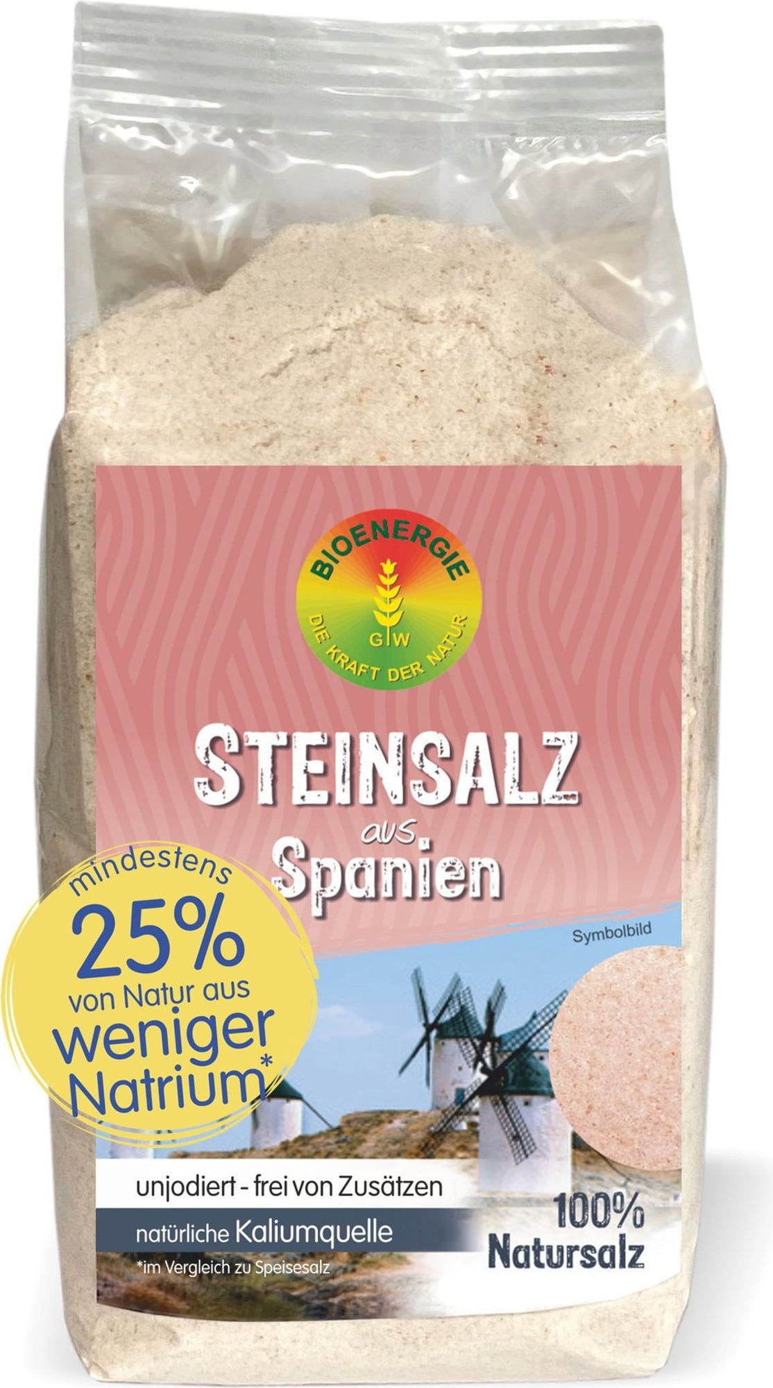 Tato kamenná sůl pochází z katalánského vnitrozemí, kde vznikla před více než 40 miliony lety. Je uložena v podzemních solných dómech a vždy byla dobře chráněna před znečištěním a vlivy prostředí. Přirozeně obsahuje vysoký podíl draslíku, což má za následek také snížení obsahu sodíku o 25 až 40 % ve srovnání se stolní solí. Díky cenným doprovodným minerálům, jako je oxid železitý, se tato sůl jeví jako mírně růžová - díky své příjemně slané chuti, která neobsahuje žádné hořké tóny, se kamenná sůl ideálně hodí k uvědomělému dochucování a vaření.