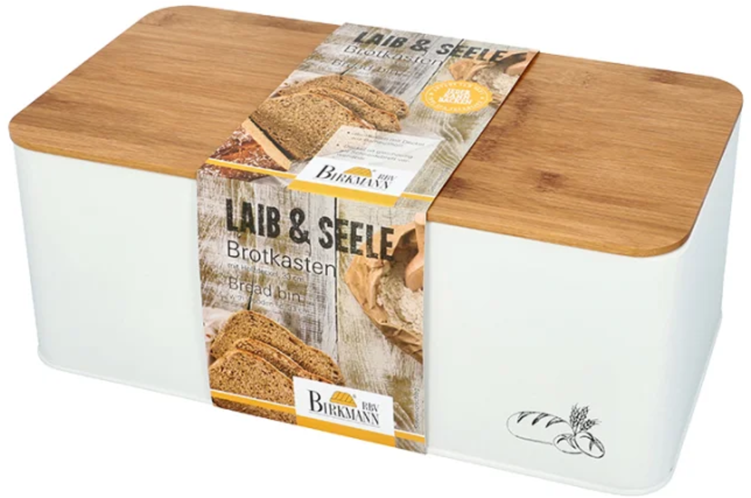 Chlebník Laib & Seele od značky Birkmann je dokonalým společníkem pro uklizenou a organizovanou kuchyni. Je vyroben z robustního kovu bezpečného pro styk s potravinami a vybaven prodyšným víkem z bambusového dřeva, díky čemuž udrží chléb a mnoho dalších potravin, jako jsou brambory nebo cibule, déle čerstvé. Víko zároveň slouží jako praktické prkénko na krájení - ušetříte tak místo a budete mít vše po ruce. Díky svým kompaktním rozměrům se chlebník hodí do každé kuchyně a zaujme svým přírodním, elegantním vzhledem.