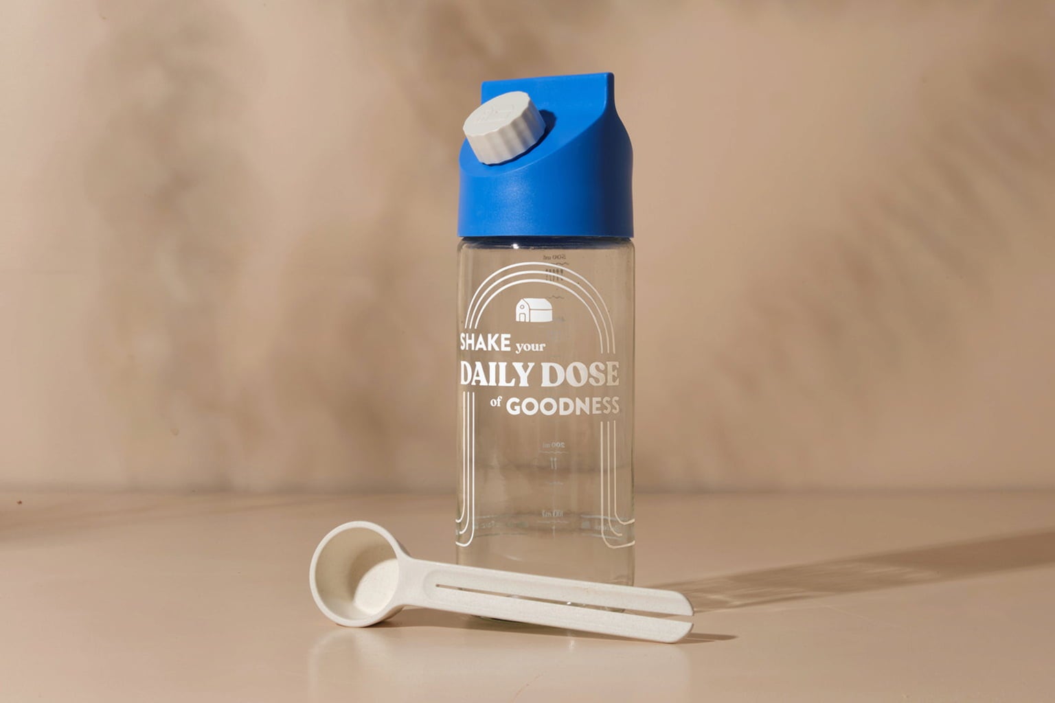 Už si připravujete nápoj shakováním nebo ještě nosíte těžké krabice? S praktickou skleněnou lahví Blue Farm a odpovídající odměrkou se můžete definitivně rozloučit s těžkými kartony mléka. Připravte si svůj oblíbený nápojový prášek Blue Farm rychle a čerstvě, doma i na cestách.