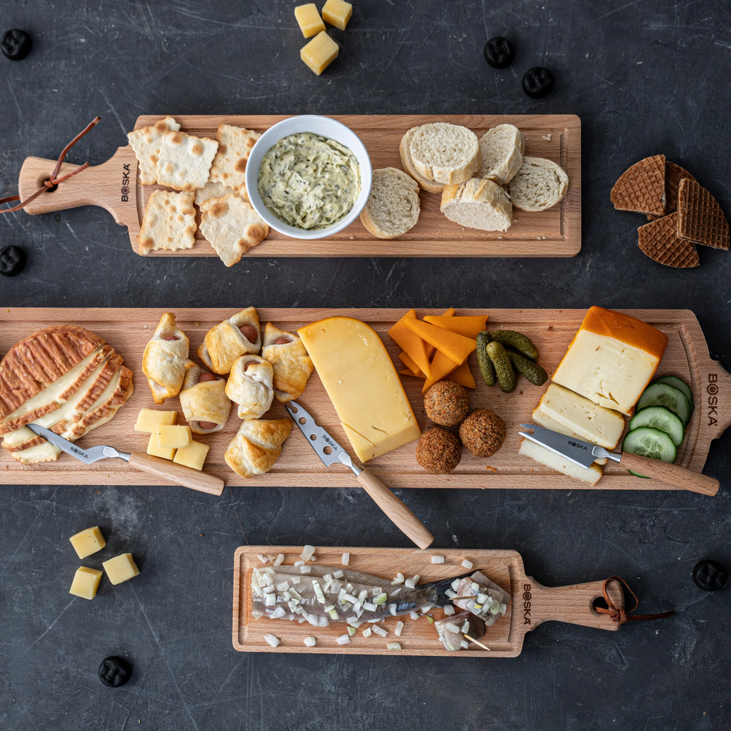 Pozvedněte svůj sýrový talíř na vyšší úroveň – s touto elegantní sadou nožů z kvalitní nerezové oceli s rustikálními rukojeťmi z bukového dřeva. Ať už krájíte krémový měkký sýr, polotvrdý sýr nebo výrazný tvrdý sýr, pro každý druh máte k dispozici ten správný nůž. Praktické gravírování na čepeli Vám napoví, který nůž právě potřebujete. Díky nepřilnavé povrchové úpravě se při krájení nic nelepí – a krájení sýra je tak skutečně radost. Stylová a funkční sada, která by ve Vaší kuchyni neměla chybět a zároveň se skvěle hodí jako dárek.