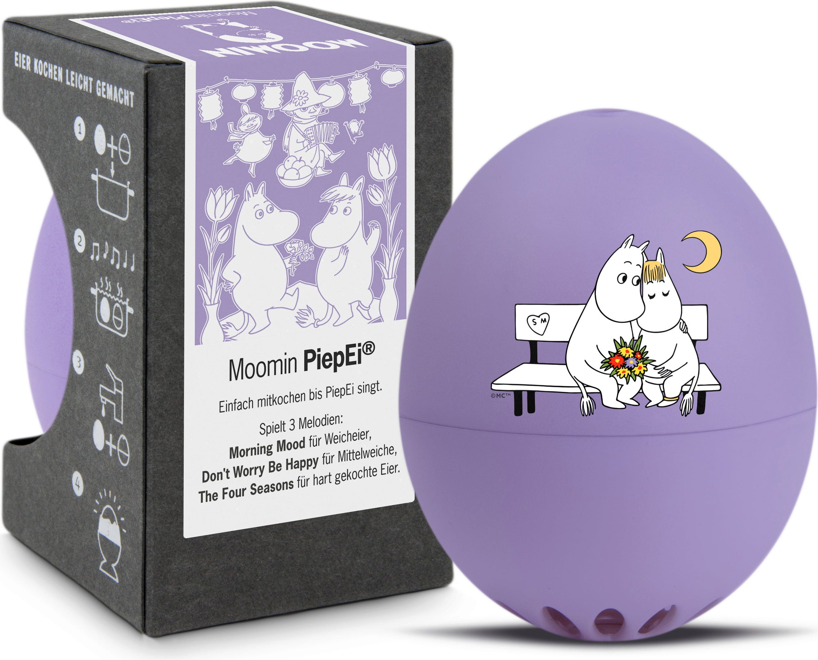 Stačí Moomin PiepEi skladovat spolu s vejci, vařit je společně a počkat, až zazní melodie odpovídající požadovanému stupni uvaření. Nezáleží na tom, s jakou teplotou vody začínáte, jakou mají vejce velikost ani v jaké nadmořské výšce vaříte.
