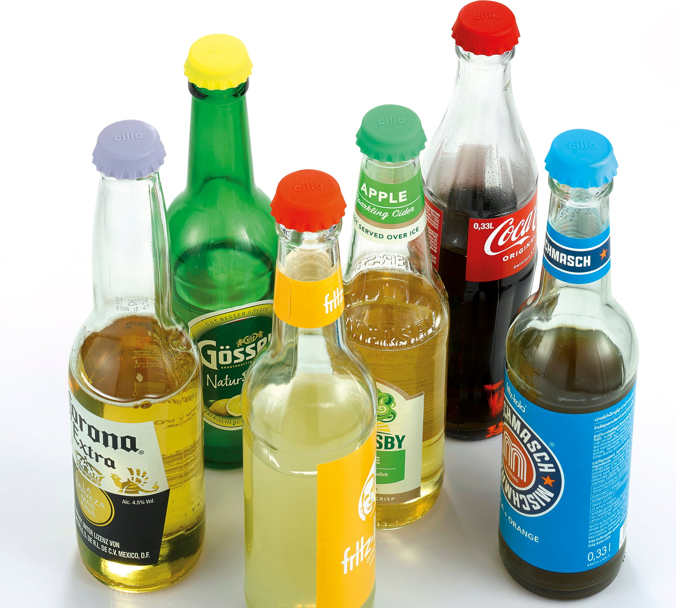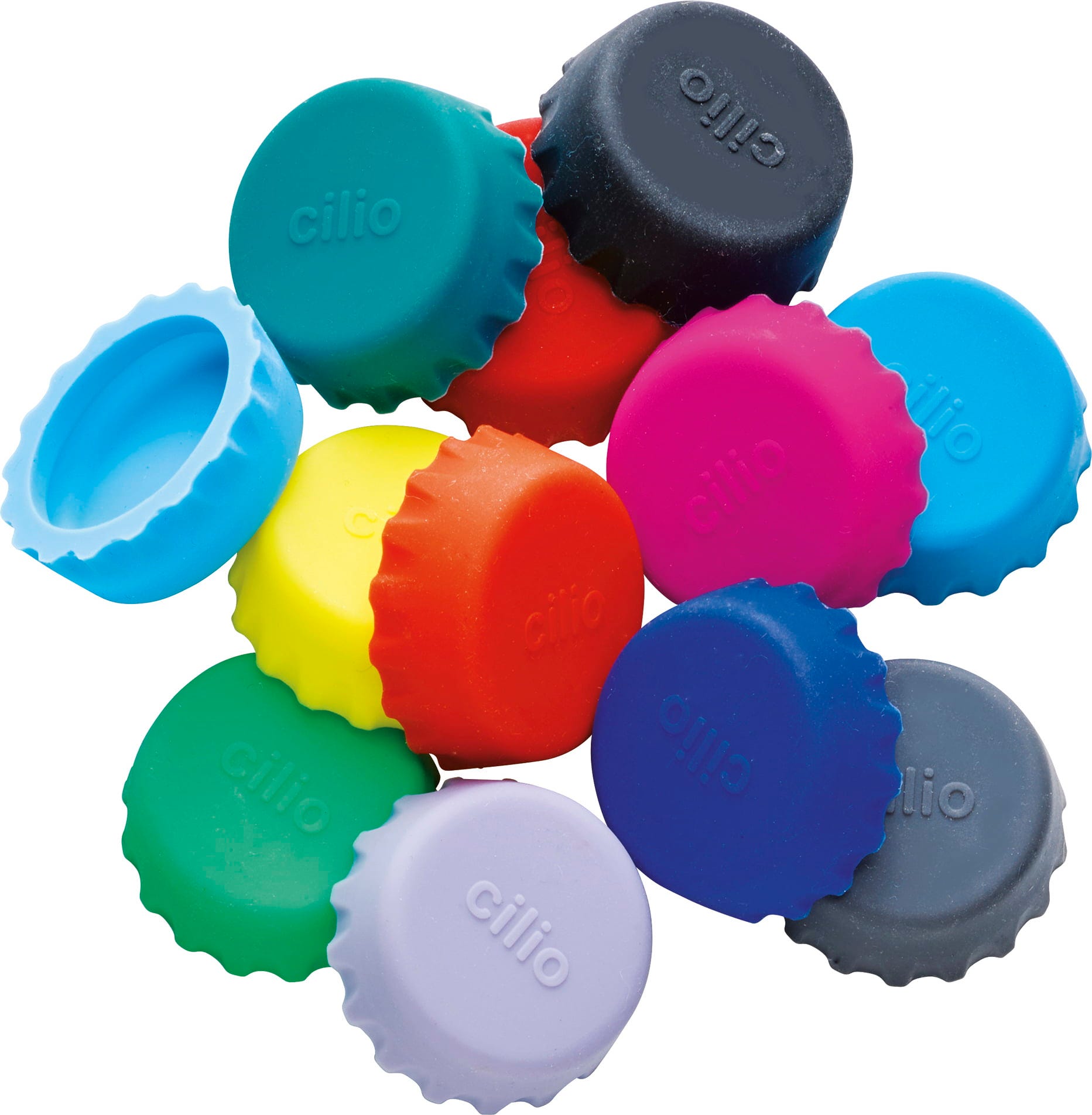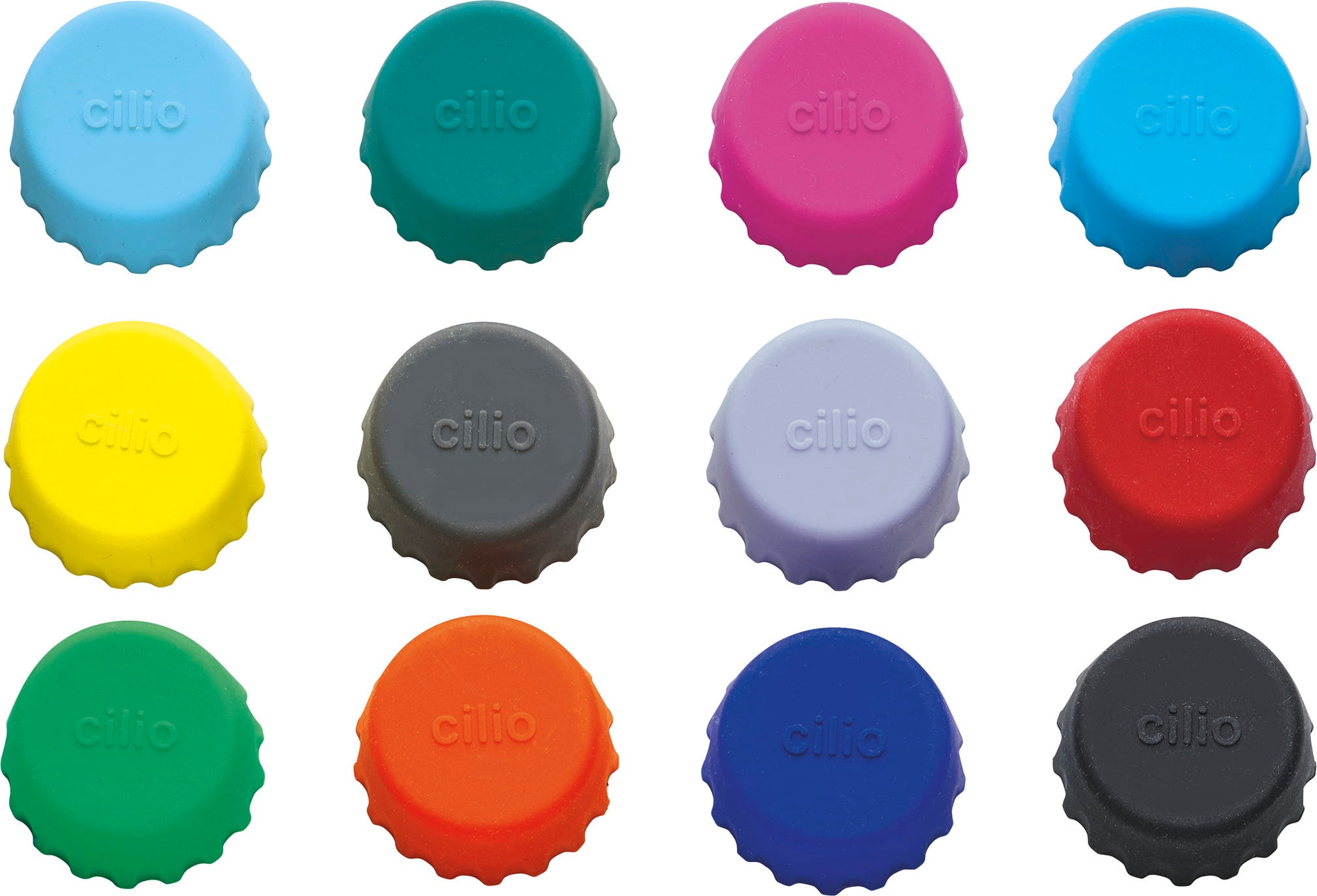 Sada 12 ks uzávěrů cilio - SALUTE je ideálním společníkem na párty a pikniky. Elastičtí pomocníci z potravinářského silikonu se dokonale přizpůsobí všem láhvím s korunkovým uzávěrem do maximálního Ø 3 cm a chrání tak před nečistotami, hmyzem i nežádoucími látkami. Nápoje s obsahem oxidu uhličitého zůstanou déle čerstvé a díky různým barevným provedením nehrozí jejich záměna.