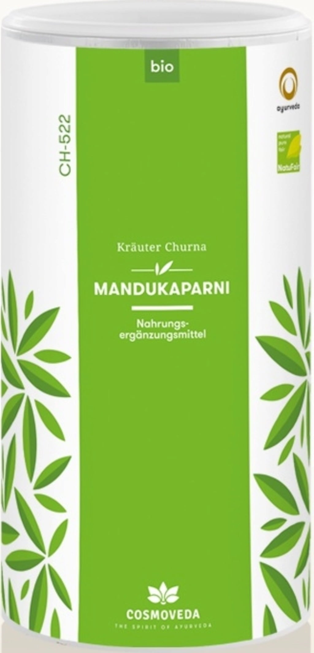 Mandukaparni - Centella asiatica - je vytrvalá rostlina křehkého bylinného vzrůstu se stonkem, který se plazí po zemi a nese v uzlinách listy i kořeny s drobnými červenými až bílými květy a oválnými až kulovitými plody. Listy se používají v ajurvédské výživě. Má hořkou chuť.
