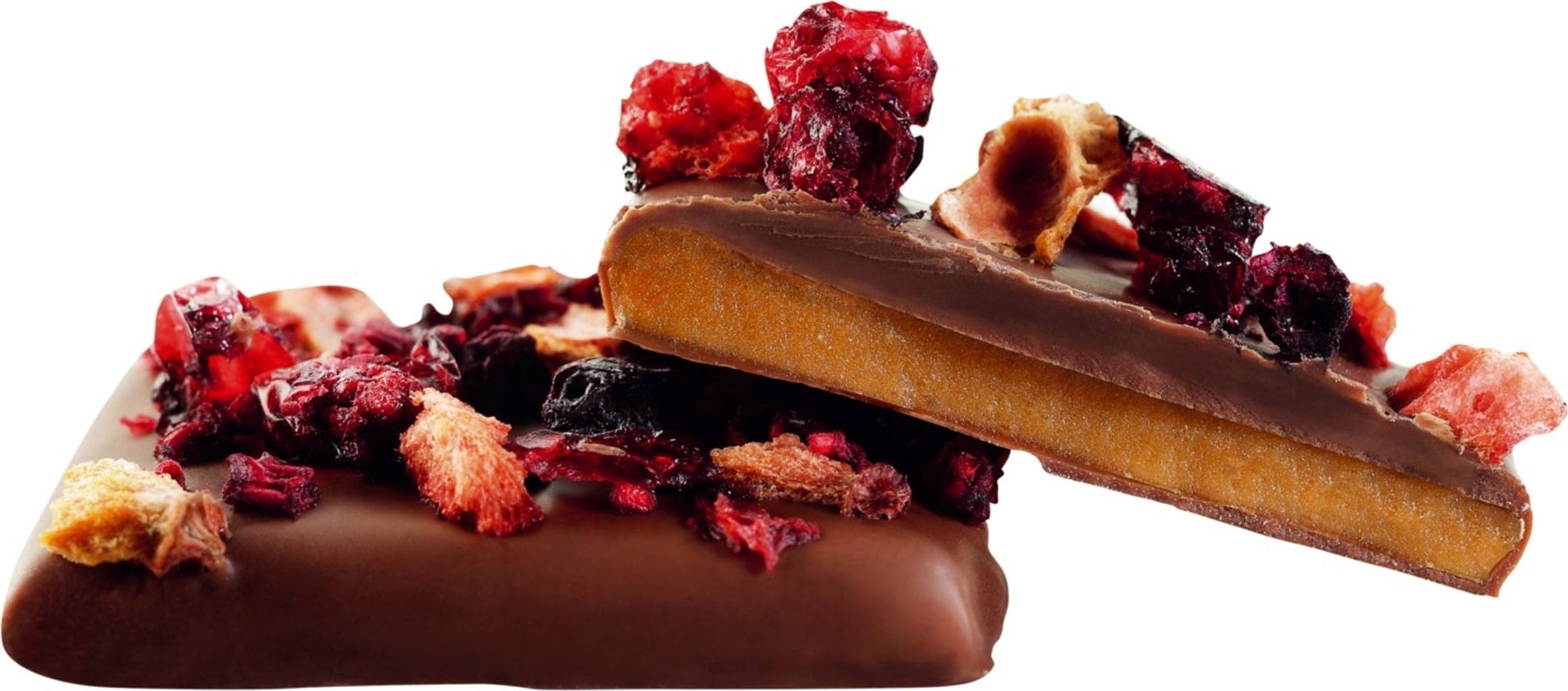 53 % karamel (máslo, cukr, glukózový sirup, sůl), 39 % mléčná čokoláda (cukr, kakaové máslo, kakaová hmota, plnotučné sušené mléko, sójový lecitin[1], vanilkové aroma), 2 % jahody, 2 % maliny, 2 % červený rybíz, 2 % černý rybíz, 38 % minimální obsah kakaové sušiny