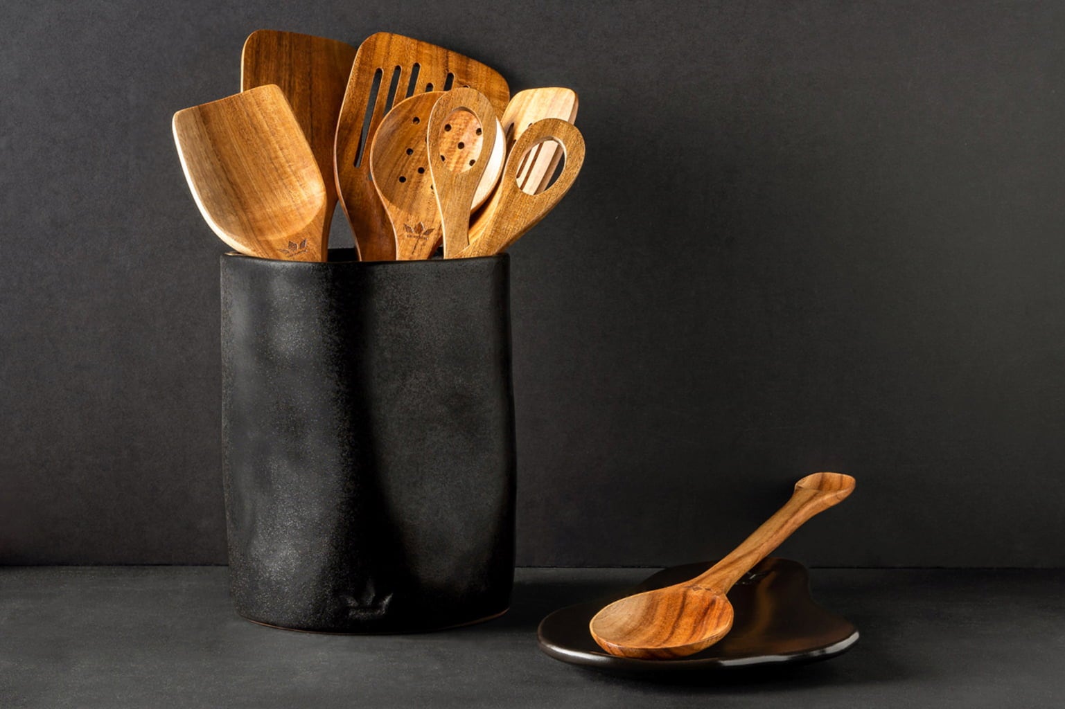 Dutchdeluxes Keramický držák na kuchyňské potřeby ve zvlněném vzhledu, Black matt