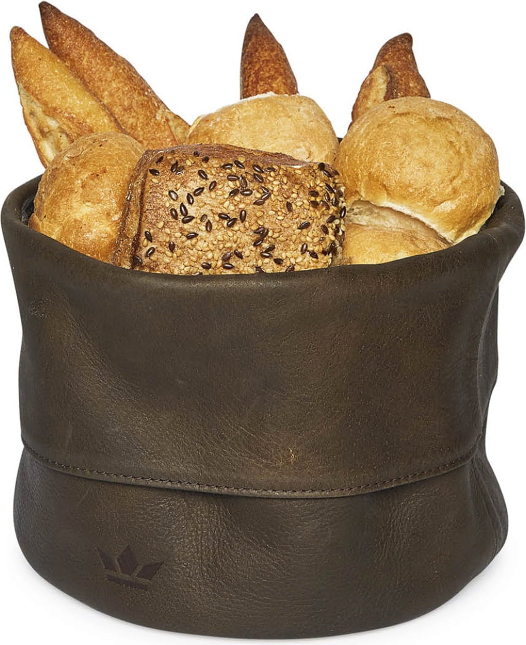Tento exkluzivní chlebník přináší na Váš stůl velmi krásný styl. Výroba z robustní kůže a hygienické plátěné podšívky propůjčuje tomuto mimořádnému stolnímu doplňku krásný look a činí z něj neodolatelnou upoutávku. Tento košík na chléb vyzařuje rustikální i elegantní kouzlo a je vzrušujícím a odlišným způsobem pro servírování chleba a rohlíků.