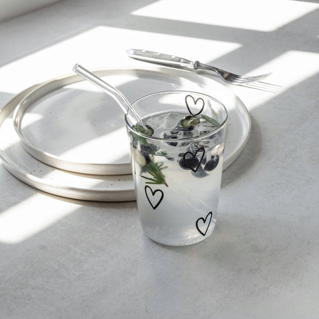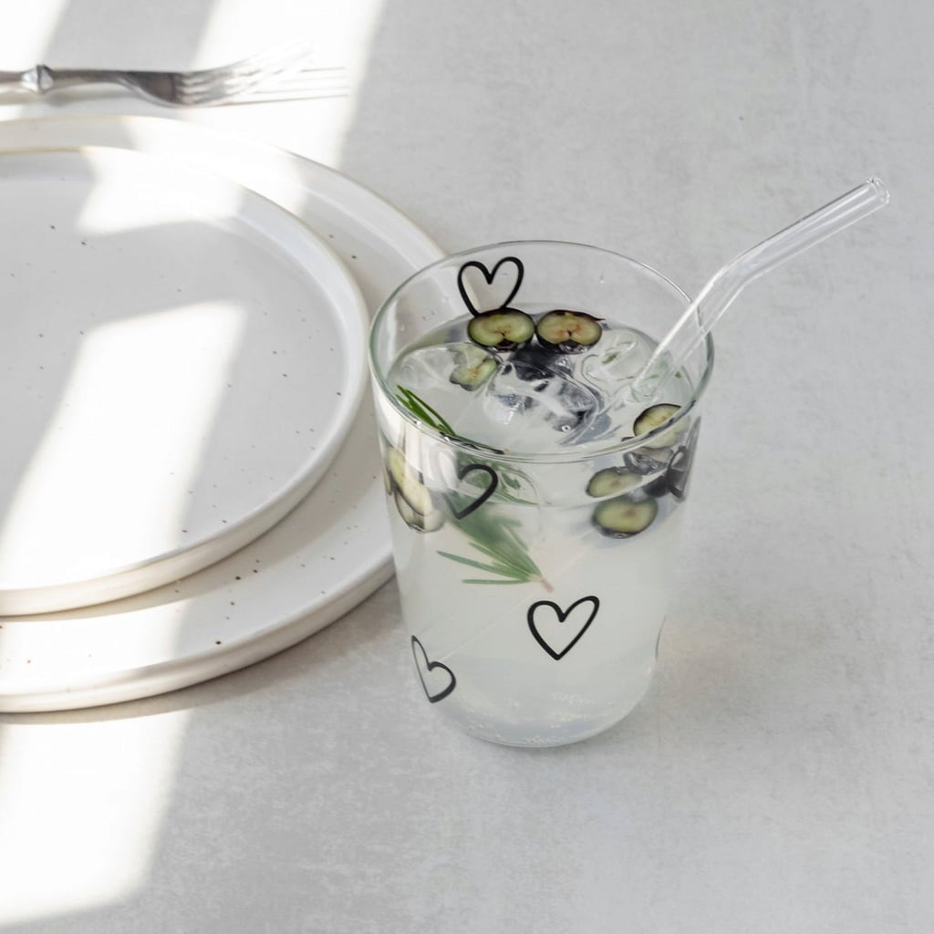 Eulenschnitt Sklenice, černý potisk, Srdíčka