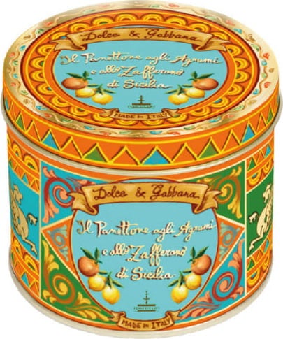 Kolekce Dolce & Gabbana od Fiasconaro obléká klasické kváskové pečivo, které se tradičně podává o Vánocích, do elegantního a exkluzivního „kabátu“: kovová dóza s neobyčejným barevným designem proměňuje tento klasický panettone v nádherný dárek – a to i bez dárkového balení!