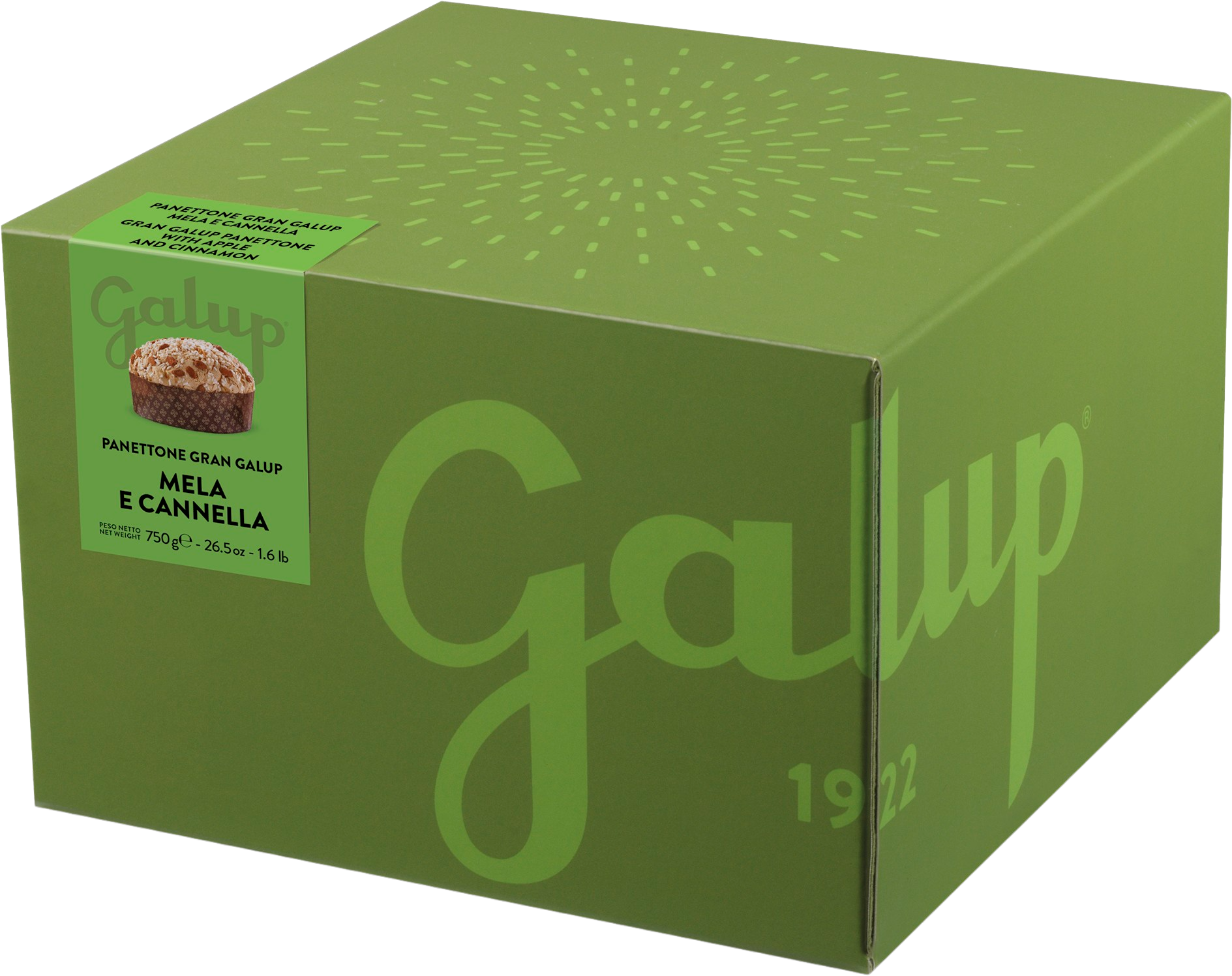 Přesně vyvážená chuť jablek a skořice navozuje pocit útulnosti a tepla, zejména v chladném ročním období. U této varianty panettone značka Galup zjemňuje nadýchaný kvásek kousky kandovaného jablka a pikantní skořicí. Díky tomu je panettone šťavnatá, ovocná a především nebesky lahodná, i bez přídavku rozinek a kandované citronové kůry! Lískovooříšková poleva a lahodné zdobení v podobě celých mandlí a kousků cukru kulinářský požitek báječně završují!