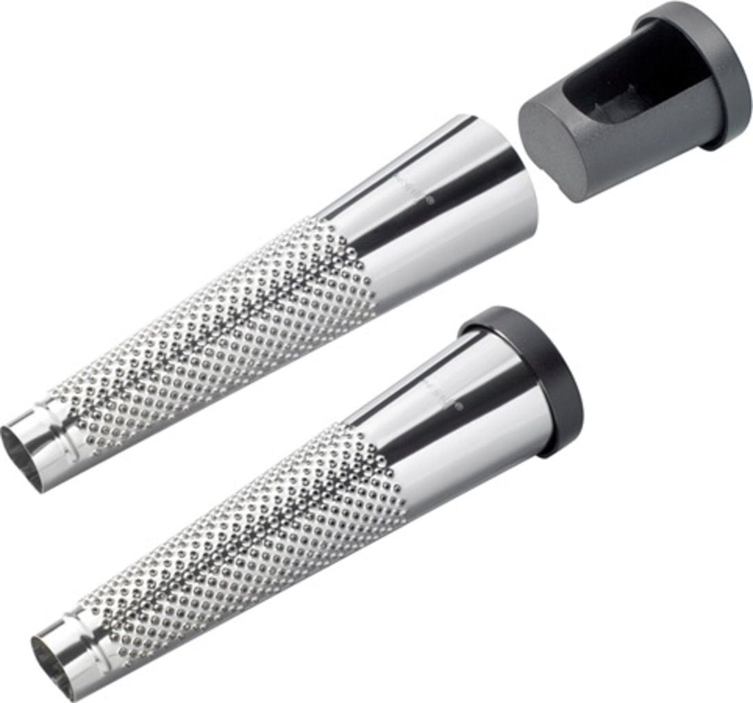 Skutečnou předností je však výsuvná zásobní nádobka na muškátový oříšek z odolného plastu. Díky ní máte oříšek vždy přímo po ruce a zároveň jej chráníte před ztrátou aroma. Struhadlo, které lze mýt v myčce nádobí, skvěle padne do ruky a zároveň je stylovým doplňkem Vaší sbírky kuchyňských pomocníků.