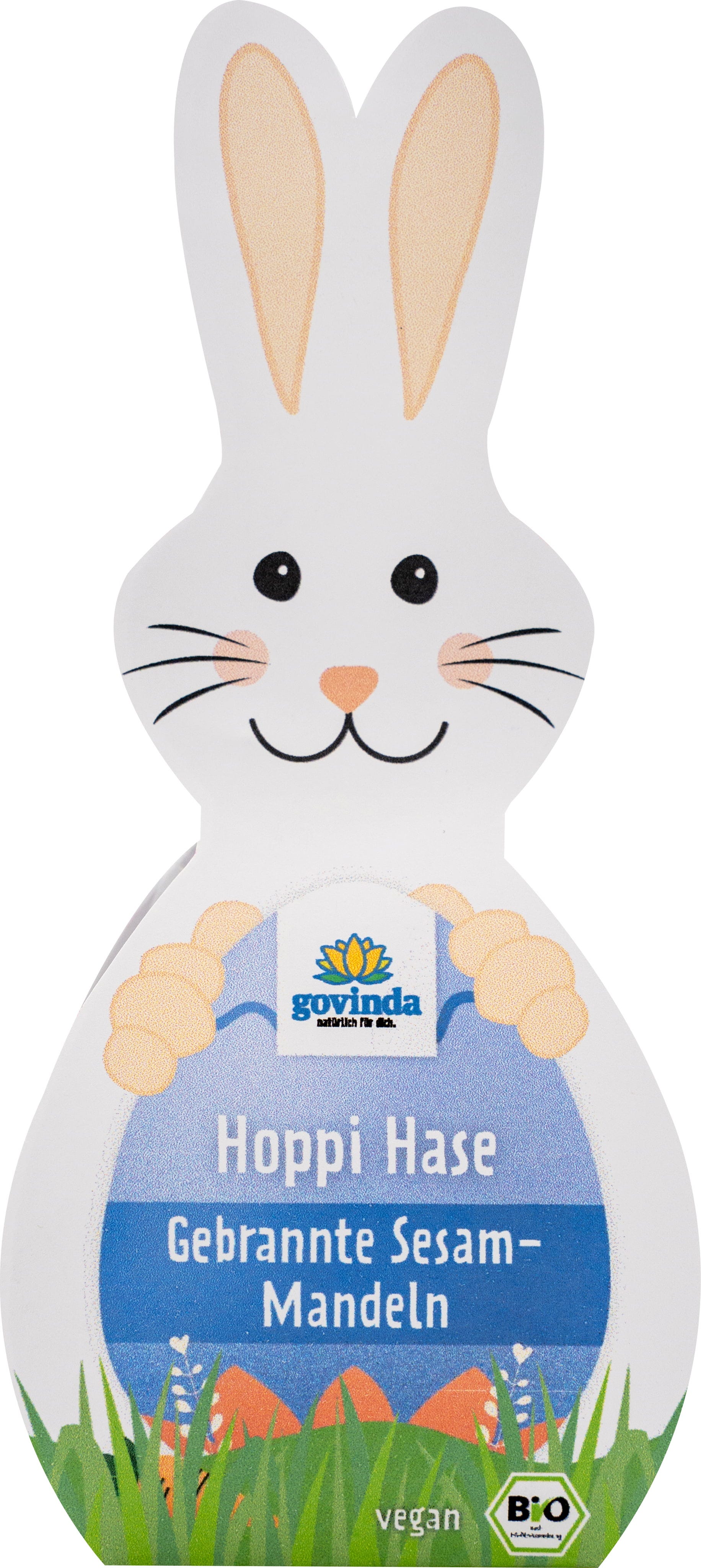 Hoppi zajíček od značky Govinda nabízí jedinečné spojení křupavých bio mandlí a lahodně oříškového sezamu. V rodinné manufaktuře Govinda jsou suroviny podle tradiční receptury praženy v měděném kotli, díky čemuž si zachovávají své typické pražené aroma. Jemná vrstva třtinového cukru dotváří tuto čistě rostlinnou bio sladkost - ideální jako vědomá pozornost do velikonočního košíku.