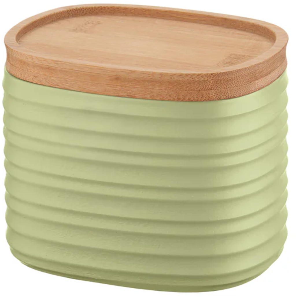 Neexistuje stylovější způsob, jak skladovat bylinky, koření, cukr nebo kávu. Důmyslně zpracovaná úložná nádoba v atraktivním drážkovaném designu s víčkem z bambusu chránícím aroma je nejen vizuálně přitažlivá, ale také udržitelná, díky speciálnímu materiálu, protože je vyrobena ze 100% recyklovaného plastu z jednorázových lahví na vodu. Snadno se čistí a lze ji mýt v myčce na nádobí.