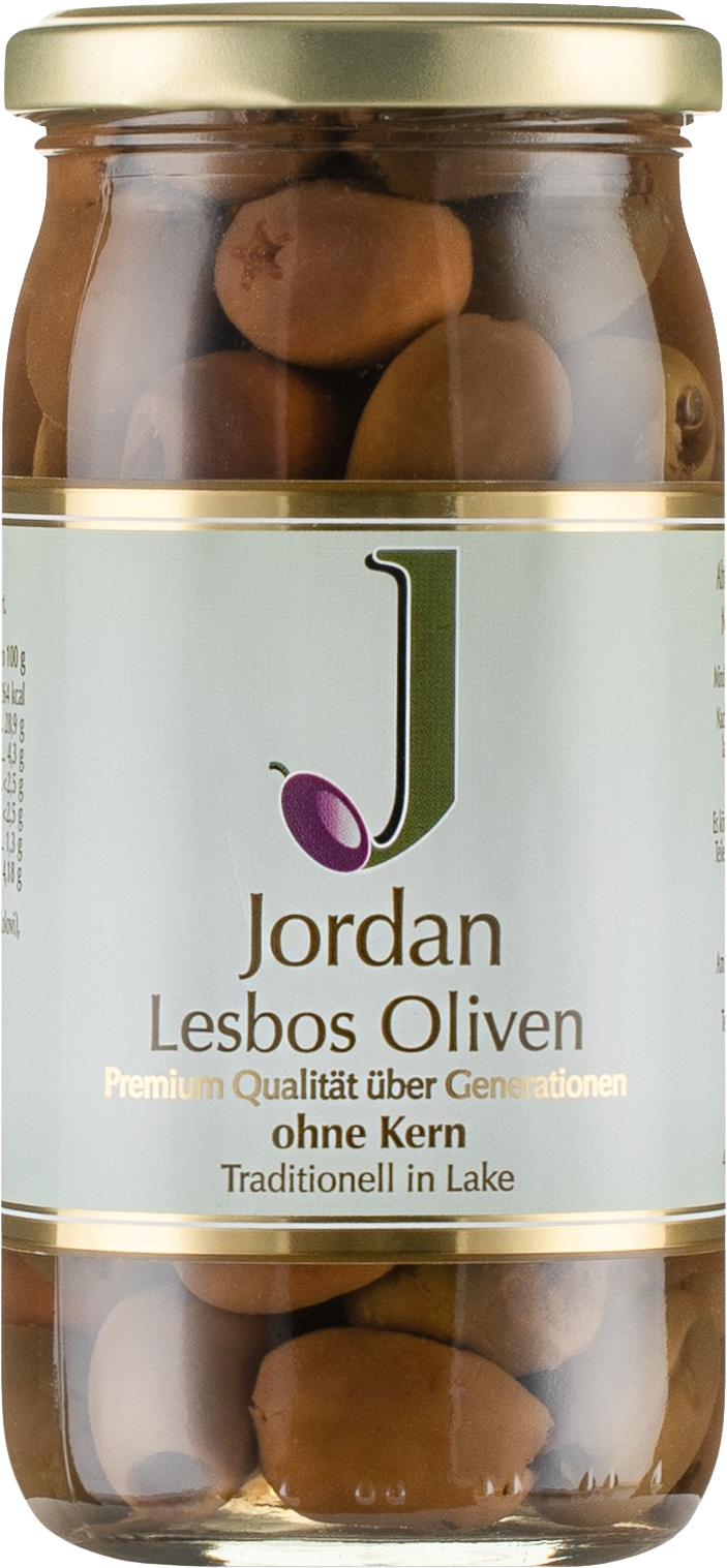 Olivy Lesbos se běžně používají k výrobě oceňovaného olivového oleje Jordan. Jako stolní olivy jsou však vzácnou delikatesou. Jejich jedinečná chuť s ovocnými tóny, jemnou hořkostí a lehkou pikantností Vás nadchne.