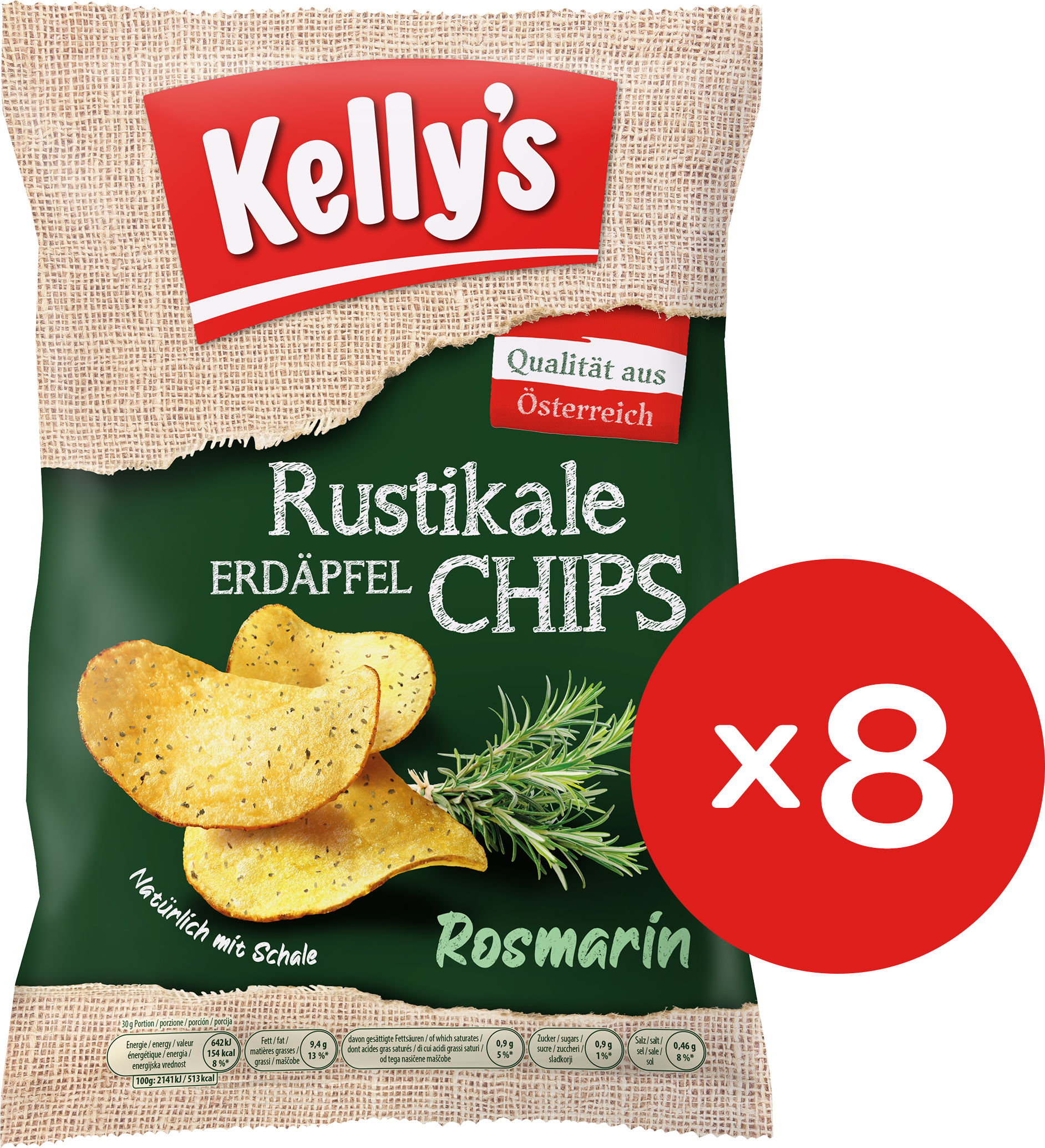 Tyto brambůrky od Kelly's spojují klasickou intenzivní chuť brambor s výrazným aroma čerstvého rozmarýnu. Díky rustikální silnější struktuře nabízejí mimořádně křupavý a výrazný zážitek, ideální pro všechny milovníky přírodních bylinkových chutí. Skvěle se hodí na společné posezení, jako svačina během dne nebo jako originální doplněk k oblíbenému drinku.