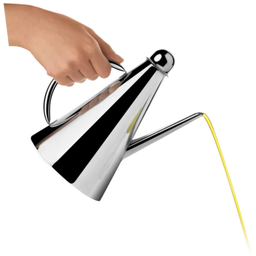 Nádoba na olej má tu obrovskou výhodu, že minimalizuje "nepořádek." S lahví je téměř nemožné neztratit poslední kapku na ubruse - proto ten povinný kroužek na ubrousek kolem hrdla lahve. S touto elegantní a snadno udržovatelnou nádobou z nerezové oceli to již není nutné. A navíc ji můžete jednoduše položit na stůl pro samoobsluhu.