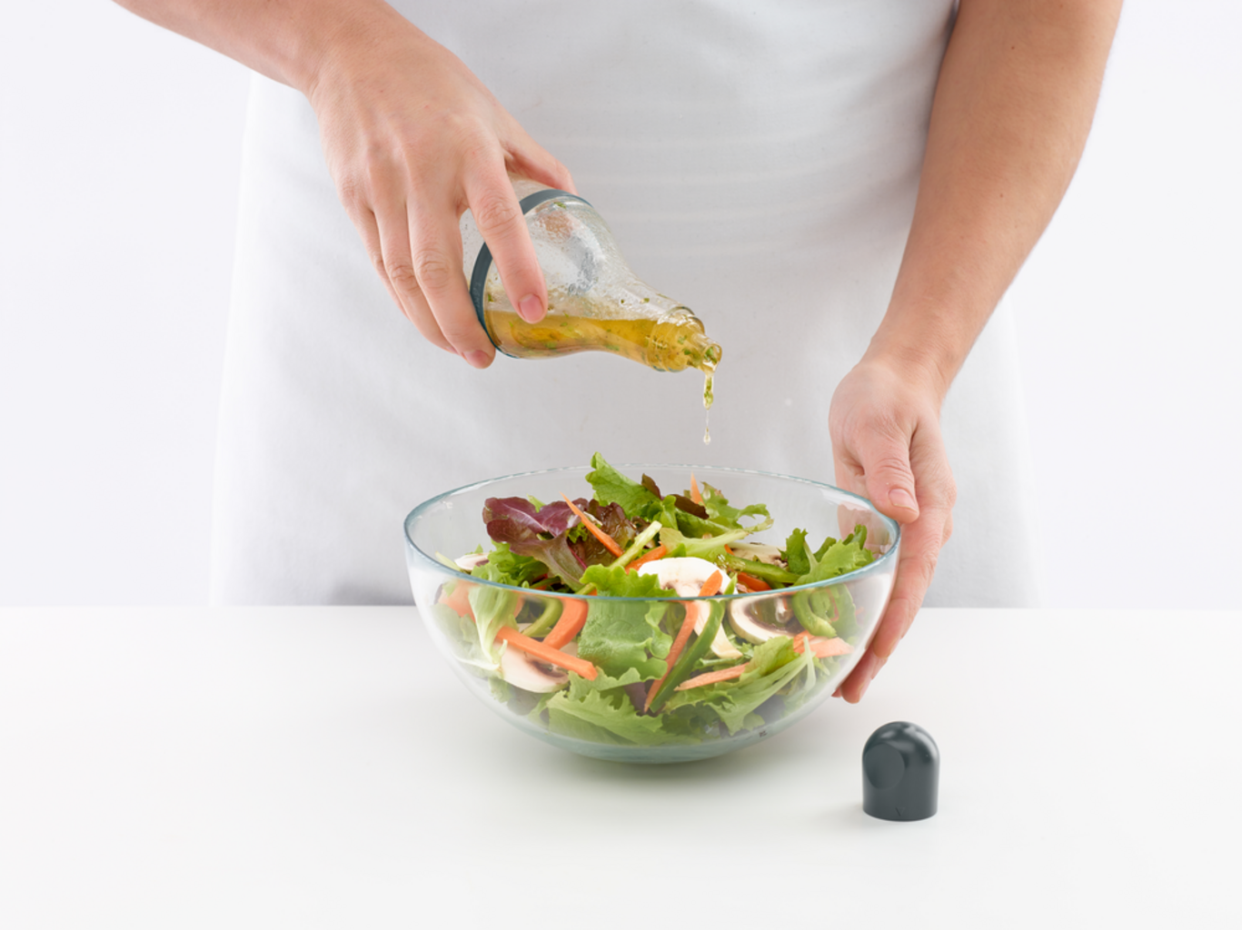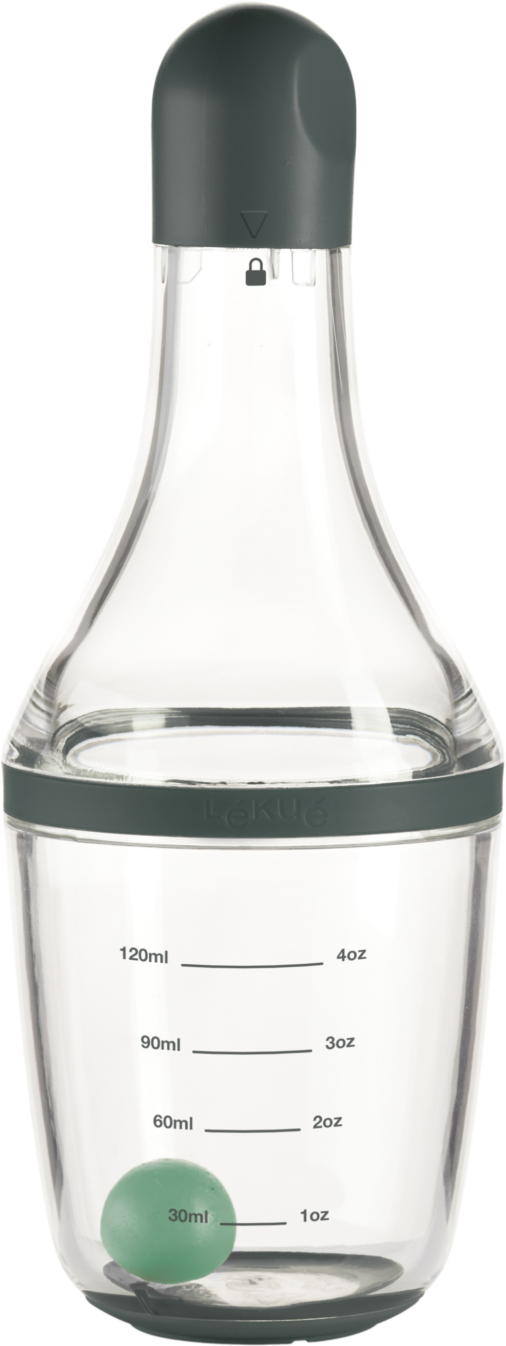 Díky velkému otvoru jej můžete snadno naplnit čerstvými ingrediencemi a integrované odměrky Vám pomohou odměřit vše přesně podle Vaší chuti. Poté jej jednoduše zavřete bezpečným platinovým silikonovým víčkem, které spolehlivě zabrání jakémukoli úniku při energickém protřepávání. Chytrá kulička uvnitř zajišťuje, že se všechny ingredience, od oleje a octa, až po bylinky a koření, dokonale promíchají a krásně emulgují do hladkého homogenního dresinku.