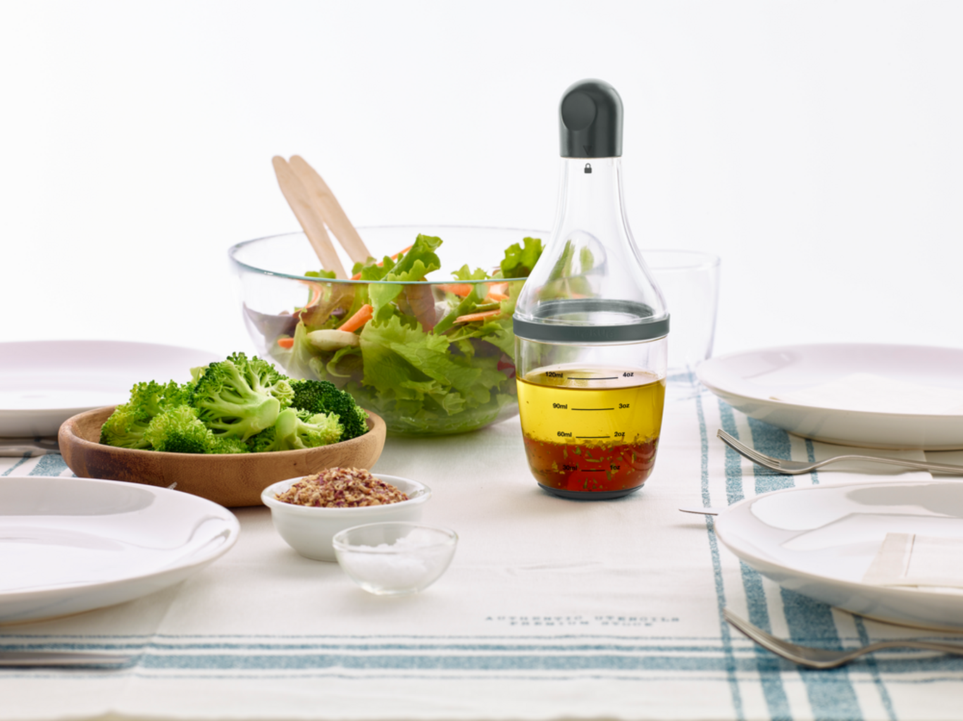 Zapomeňte na nudné hotové dresinky a vytvořte si vlastní neodolatelně lahodné salátové zálivky! S tímto dresinkovým shakerem se příprava, míchání a servírování Vašich oblíbených vinaigrettes stane čirým potěšením.