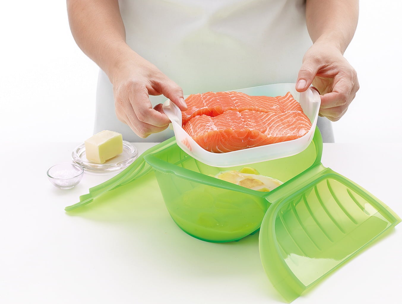 S tímto mikrovlnným napařovačem od Lékué bude Vaše jídlo na stole raz dva! Během několika minut a často i ve třech jednoduchých krocích můžete ingredience jemně napařit přímo v mikrovlnné troubě. Tato metoda vaření zachovává chuť jídla a je také obzvláště energeticky úsporná – ve srovnání s běžnou troubou ušetříte až 80 % energie!