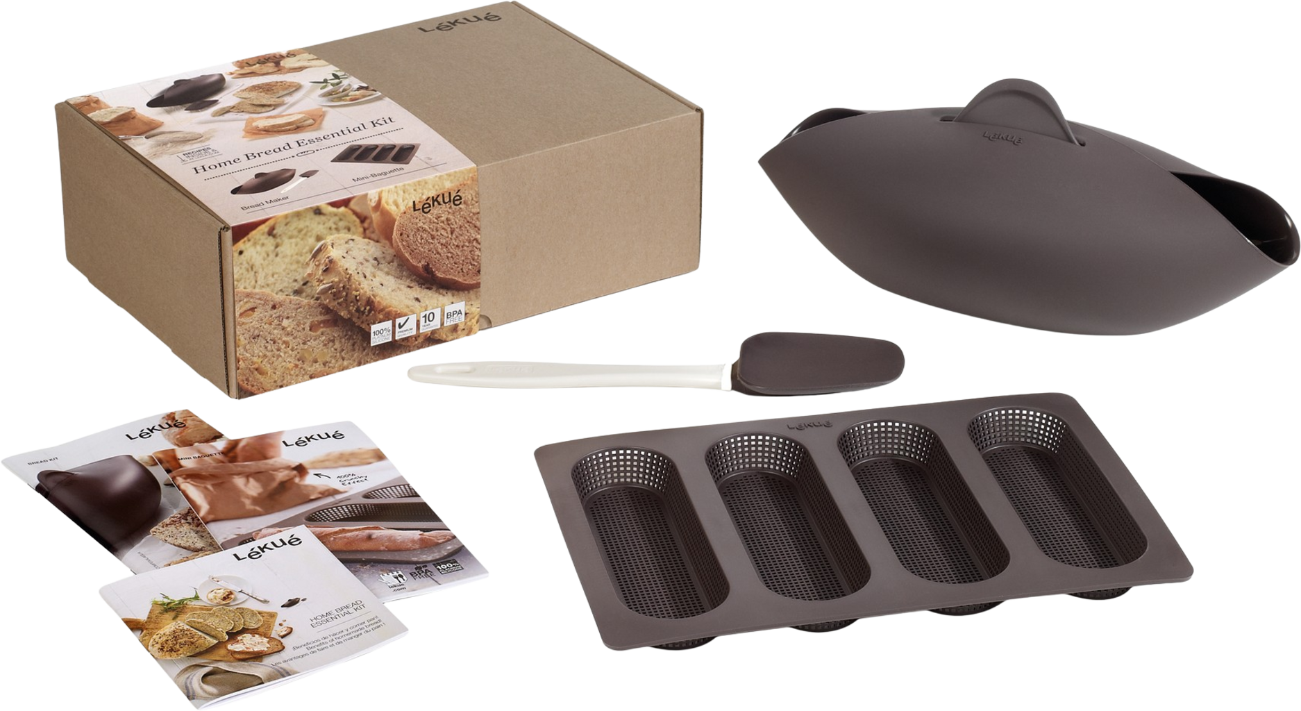 S touto sadou na pečení chleba a baget je začátek v úžasném světě pečení chleba snadný! Stěžejním prvkem sady je důmyslná silikonová forma na chleba. Umožňuje Vám odvážit ingredience na chléb, uhníst těsto a poté vše upéct v jedné nádobě. To znamená méně nepořádku v kuchyni a více času na potěšení. Speciální design s bočními otvory zajišťuje nádherně křupavou kůrku, zatímco forma funguje jako částečně uzavřená mísa, která umožňuje cirkulaci páry a udržuje chléb uvnitř nádherně vláčný.