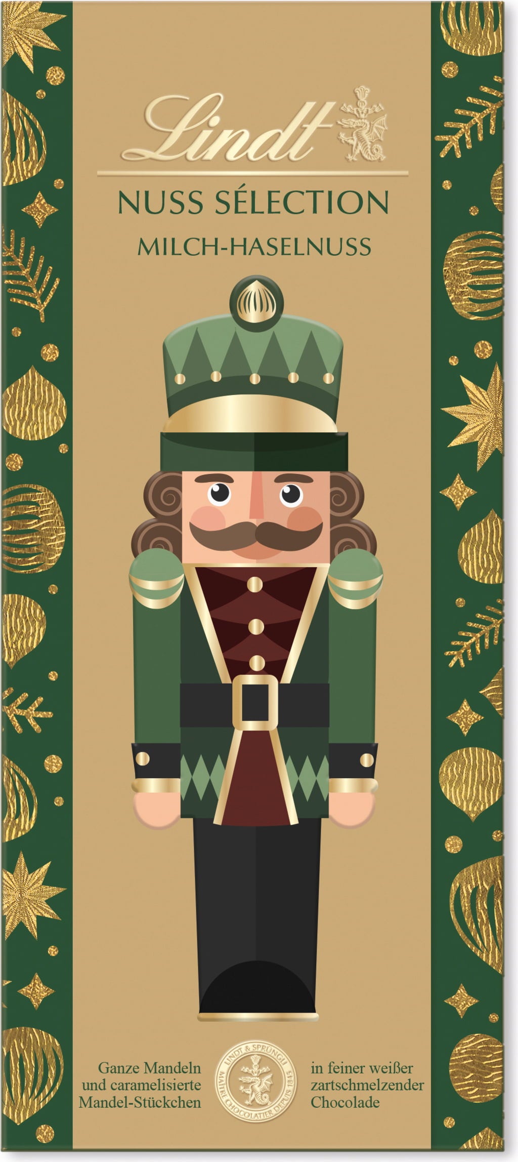 Darujte vánoční radost s čokoládovou tabulkou Nuss Sélection od Lindt. Neodolatelně se rozplývající čokoláda plněná celými ořechy a kousky karamelizovaných ořechů.