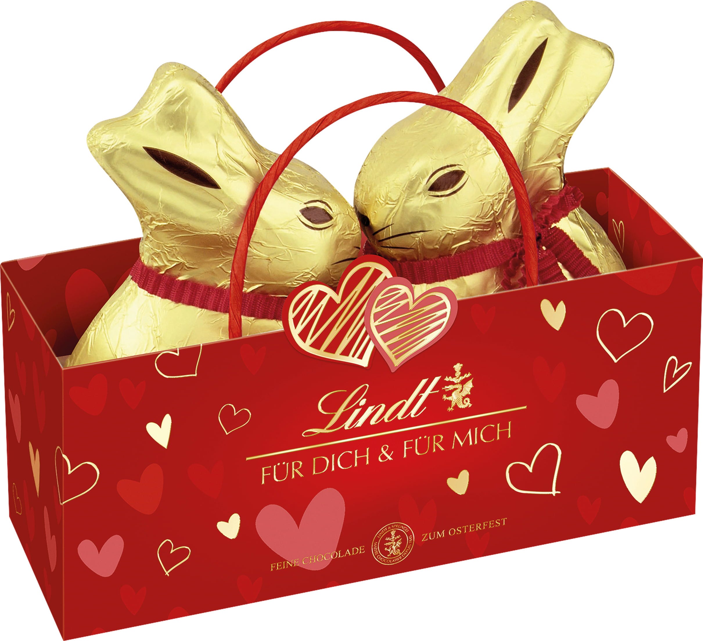 Překvapte své blízké Lindt zlatými zajíčky v okouzlující taštičce ve tvaru srdce, která okamžitě vykouzlí dobrou náladu. Darujete tak nadčasový požitek z té nejjemnější alpské plnotučné mléčné čokolády, zabalený do roztomilé srdíčkové taštičky v láskyplném designu s červenými srdíčky a hravými detaily.