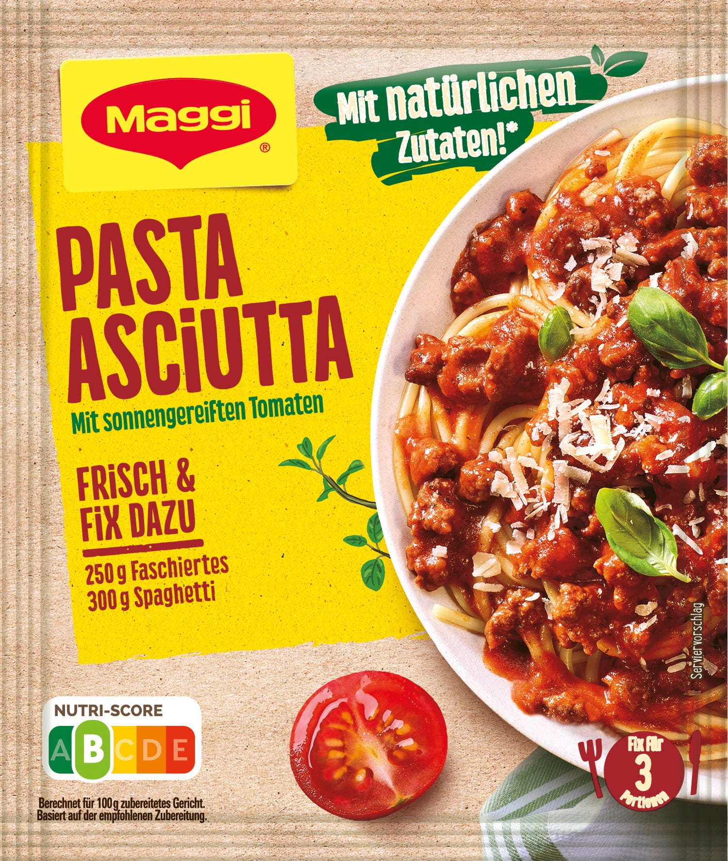 Kořenicí směs Maggi na Pasta Asciutta přináší chuť Itálie na Váš stůl rychle a bez zbytečné námahy. Aromatická kombinace se sluncem vyzrálých rajčat a jemných bylinek zajistí poctivý chuťový zážitek na talíři a potěší celou rodinu. Stačí přidat kořenicí směs do omáčky Pasta Asciutta a podávat společně se špagetami.