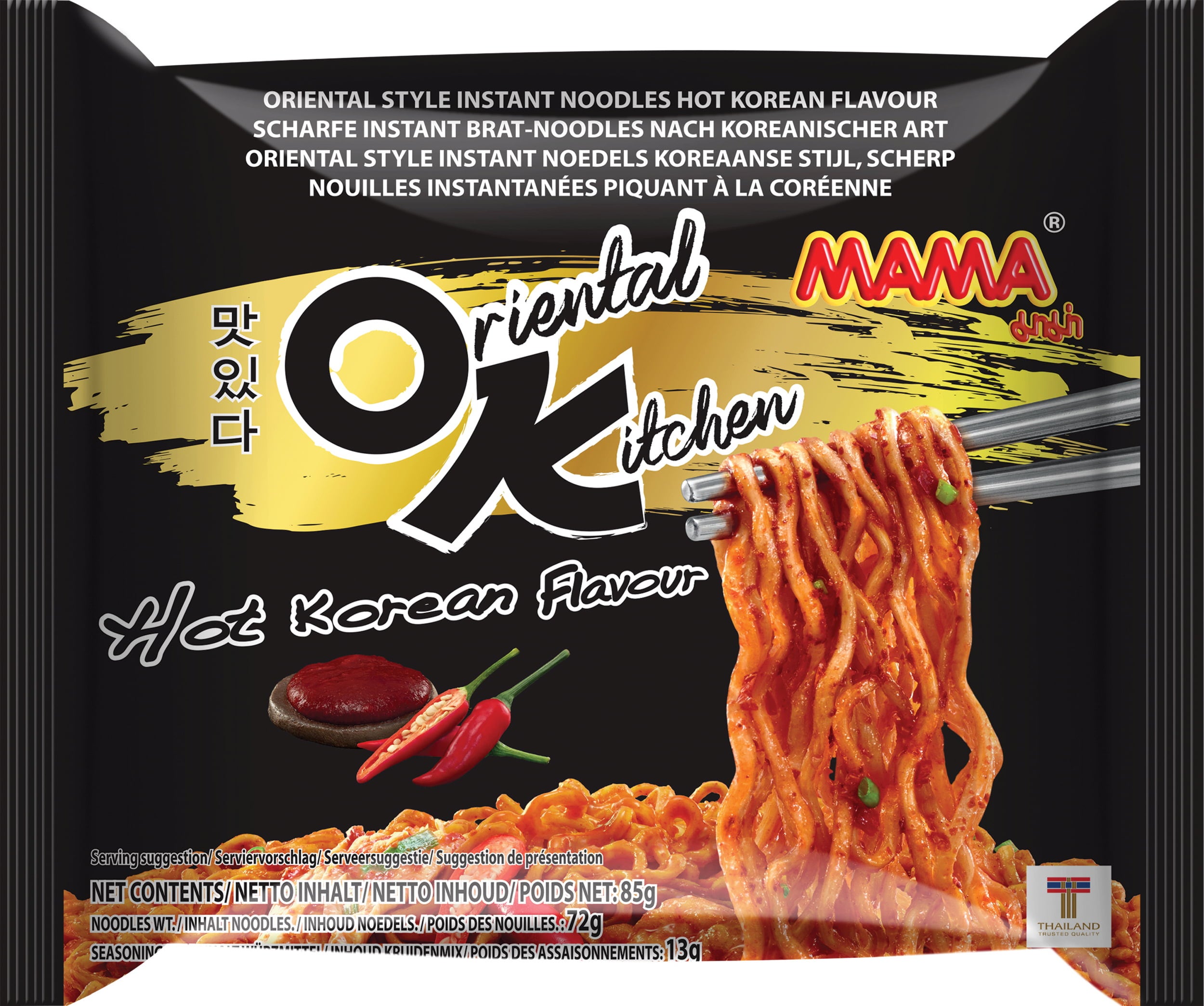 S těmito instantními nudlemi od značky MAMA zažijete intenzivní chuťový zážitek s korejskou pálivostí: aromatické nudle se silnou kořenicí pastou, dochucené chilli a česnekem - ideální, pokud máte chuť na něco pikantního a výrazného.
