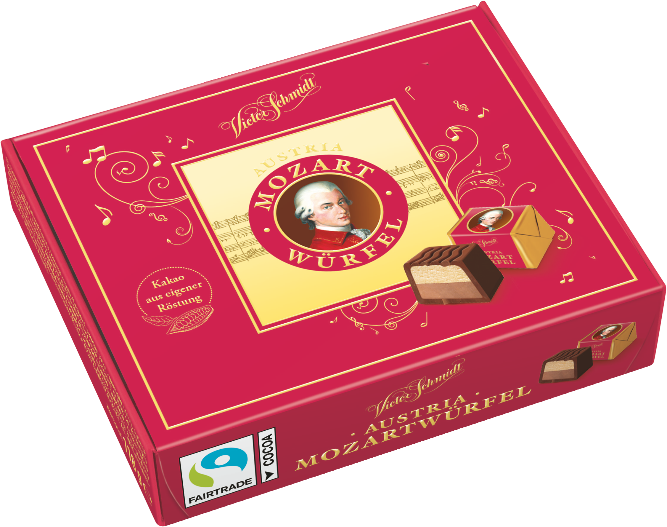 Ušlechtilý pralinový zážitek s rakouskou tradicí: Victor Schmidt Mozartovy kostky spojují jemnou čokoládu s nejlahodnější nugátovo-marcipánovou náplní. Ideální jako dárek nebo pro vlastní potěšení.