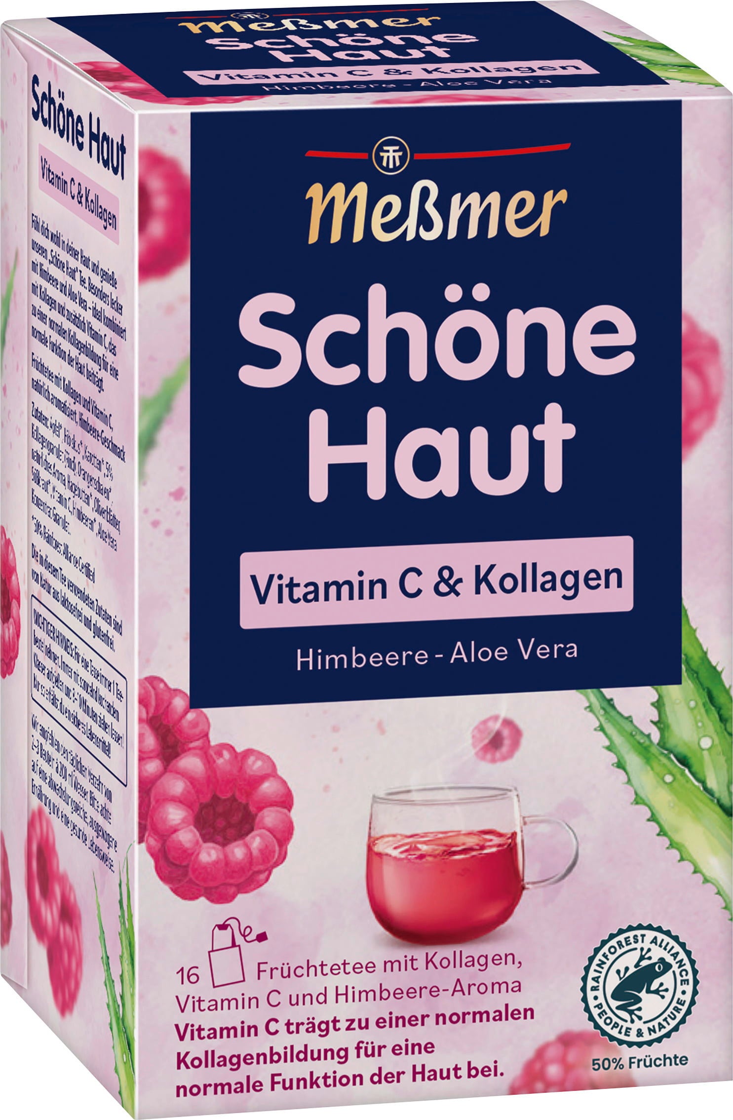 Tento ovocný čaj od Meßmer spojuje ovocné aroma malin s vitamínem C a kolagenem. Jedinečnou recepturu navíc doplňují jablka, ibišek, mrkev, olivové listy a aloe vera.