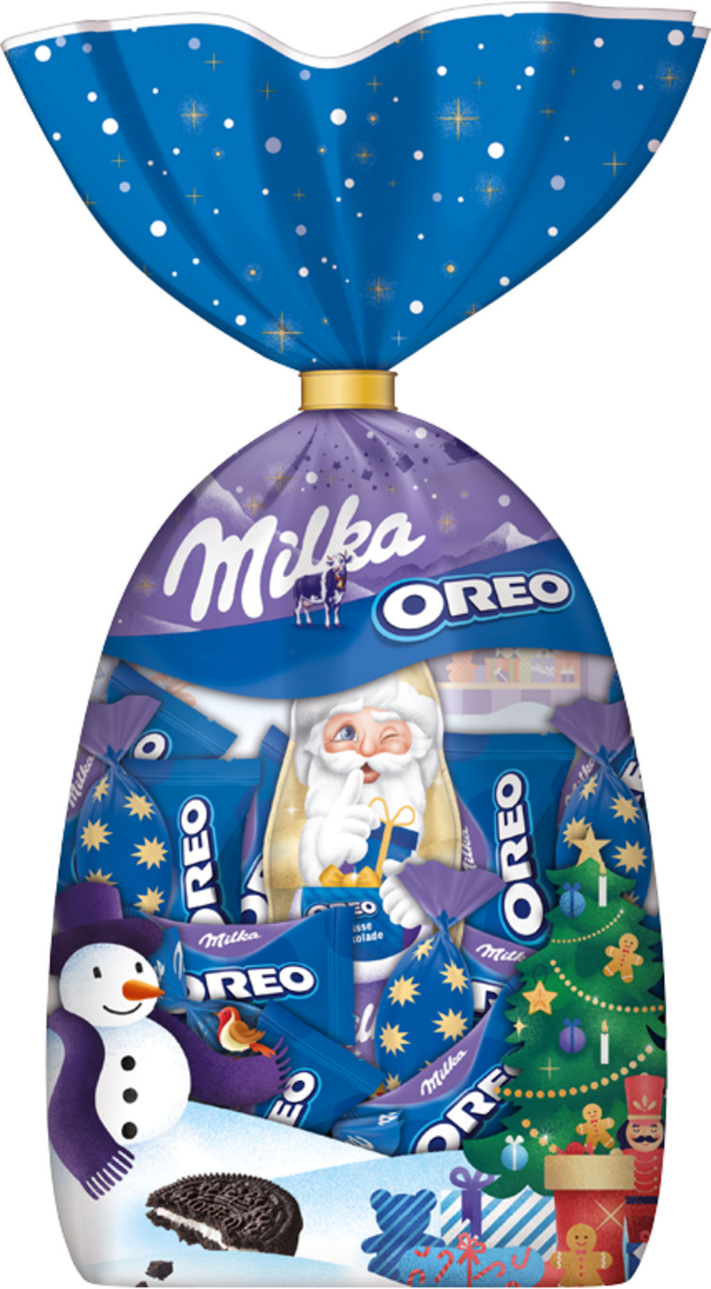 Milka Oreo vánoční směs spojuje lahodnou jemně rozplývající se čokoládu s křupavými kousky Oreo v jedinečné sváteční kombinaci – dokonalý požitek pro vánoční období. Ideální jako dárek nebo na pro sebe na mlsání!