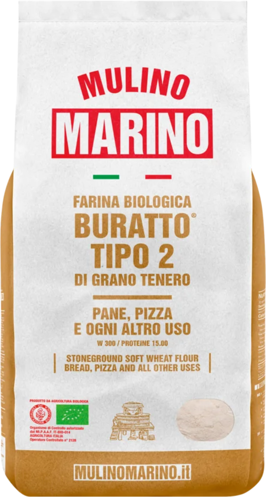 „Buratto“ od Mulino Marino je výjimečná pšeničná mouka, která se mele na přírodních kamenech a následně pečlivě prosévá. Tento proces zachovává cenné aromatické nuance zrna a dodává mouce vynikající strukturu a zpracovatelnost.