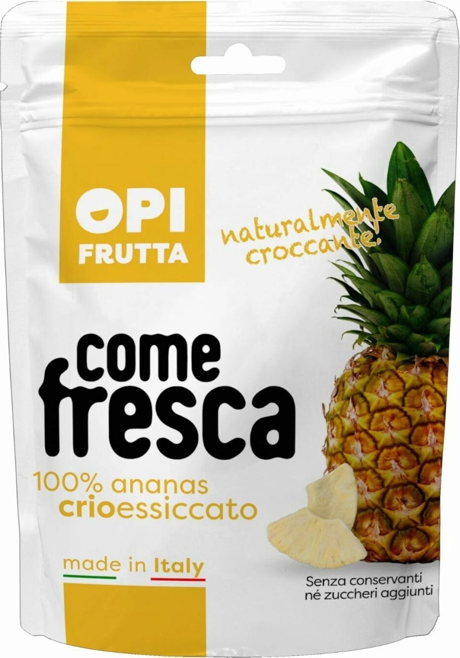 Tento mrazem sušený ananas je skutečným králem mezi snacky: ovocný, sladký a přirozeně bohatý na živiny. Skvěle se hodí do müsli, jako rychlá svačinka nebo do smoothie – s touhle ovocnou dobrotou si tropickou svěžest vychutnáte v každém ročním období.