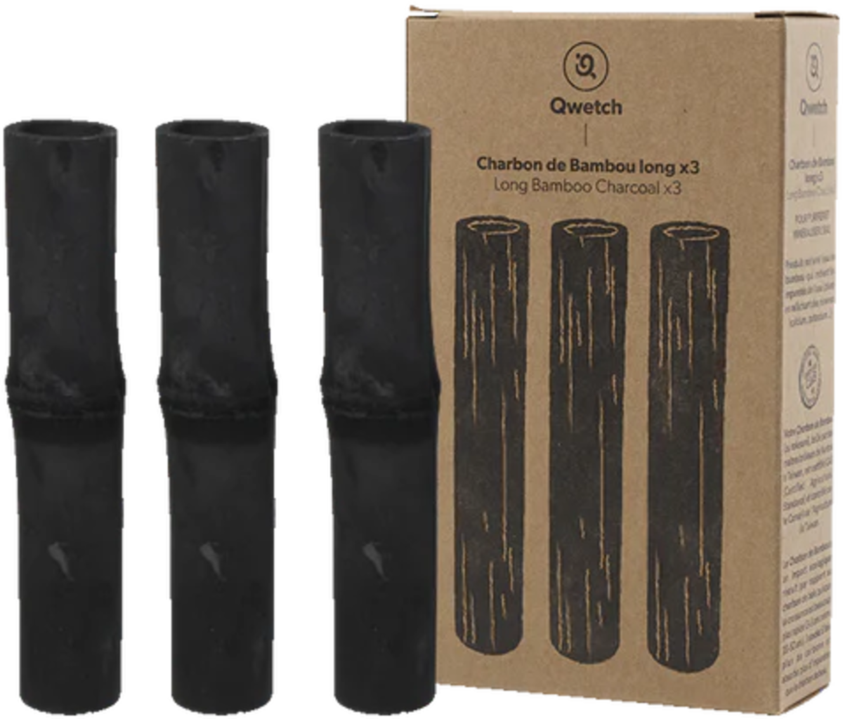 Bambusové uhlí Qwetch čistí a mineralizuje vodu. Uhlíková tyčka zadržuje nečistoty (zejména chlór) tím, že mimo jiné uvolňuje hořčík, vápník nebo draslík. Pokud jde o bambusové uhlí, Qwetch klade zvláštní důraz na původ, dobré pěstební podmínky a vyhýbání se chemickému ošetření.