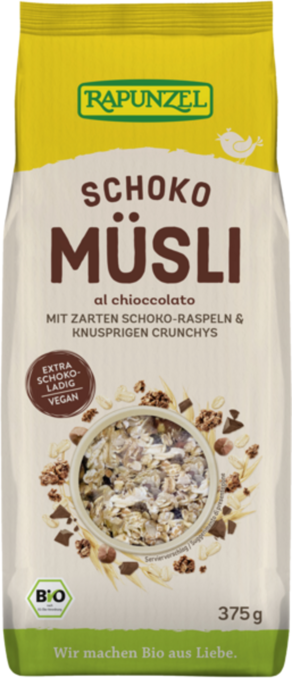 Puffovaný amarant z rakouského bio zemědělství dodává tomuto müsli jemnou praženou vůni: spolu s hoblinkami hořké čokolády, křupavými oříšky a jemnou bourbonskou vanilkou je to skutečný snídaňový hit! Přidané ovesné vločky zasytí na dlouhou dobu a připraví Vás na výzvy dne. Veganské müsli je nejlepší smíchat s horkým nebo studeným mlékem, s jogurtem nebo s rostlinným nápojem dle vlastního výběru.