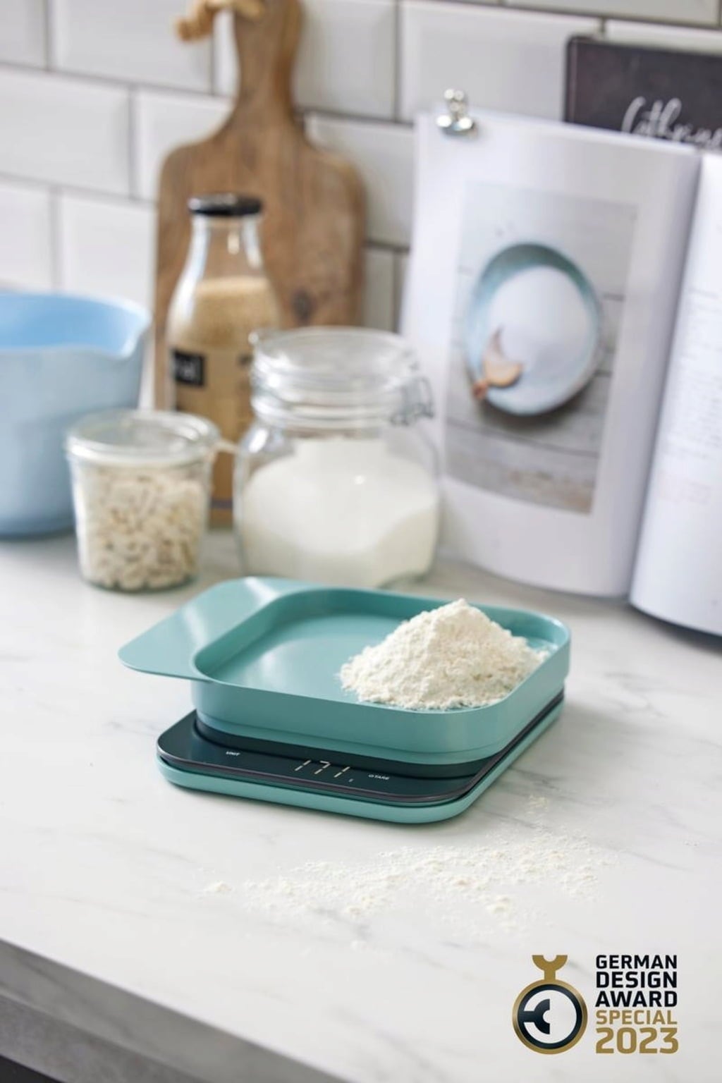 Funkce Tara usnadňuje měření více přísad a díky automatickému vypínání zůstává váha energeticky úsporná. Silikonové nožičky na spodní straně zajišťují pevný postoj. Displej také včas ukazuje vybitou baterii nebo přetížení váhy.