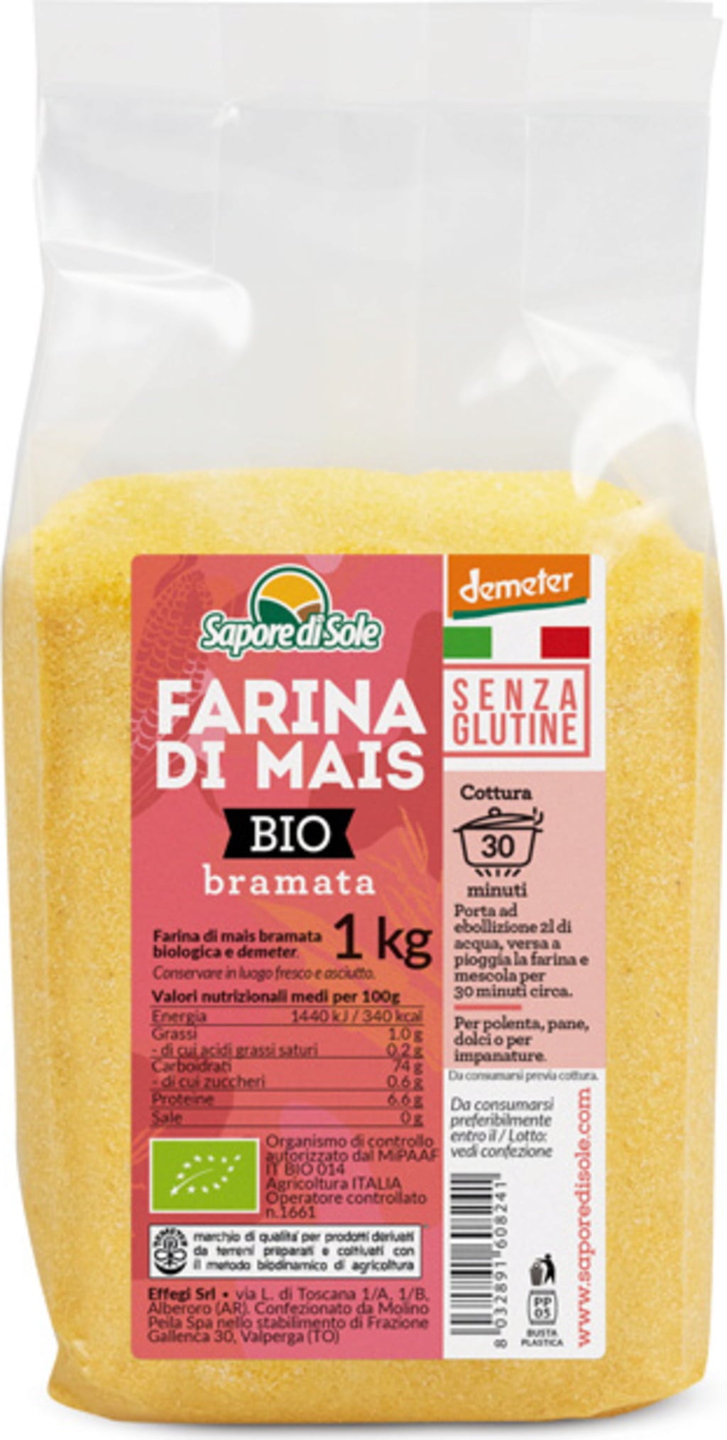 Sapore di Sole Bio kukuřičná mouka (hrubozrnná), 1 kg