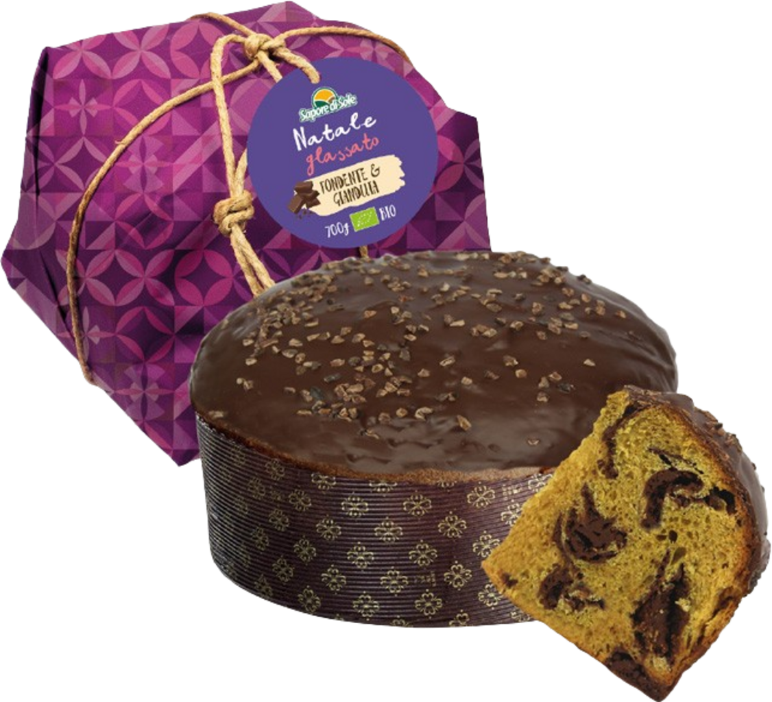 Toto veganské panettone je ideální pro všechny gurmány a znalce: nadýchané kváskové těsto obsahuje lahodný čokoládový krém a je obalené v čokoládě.